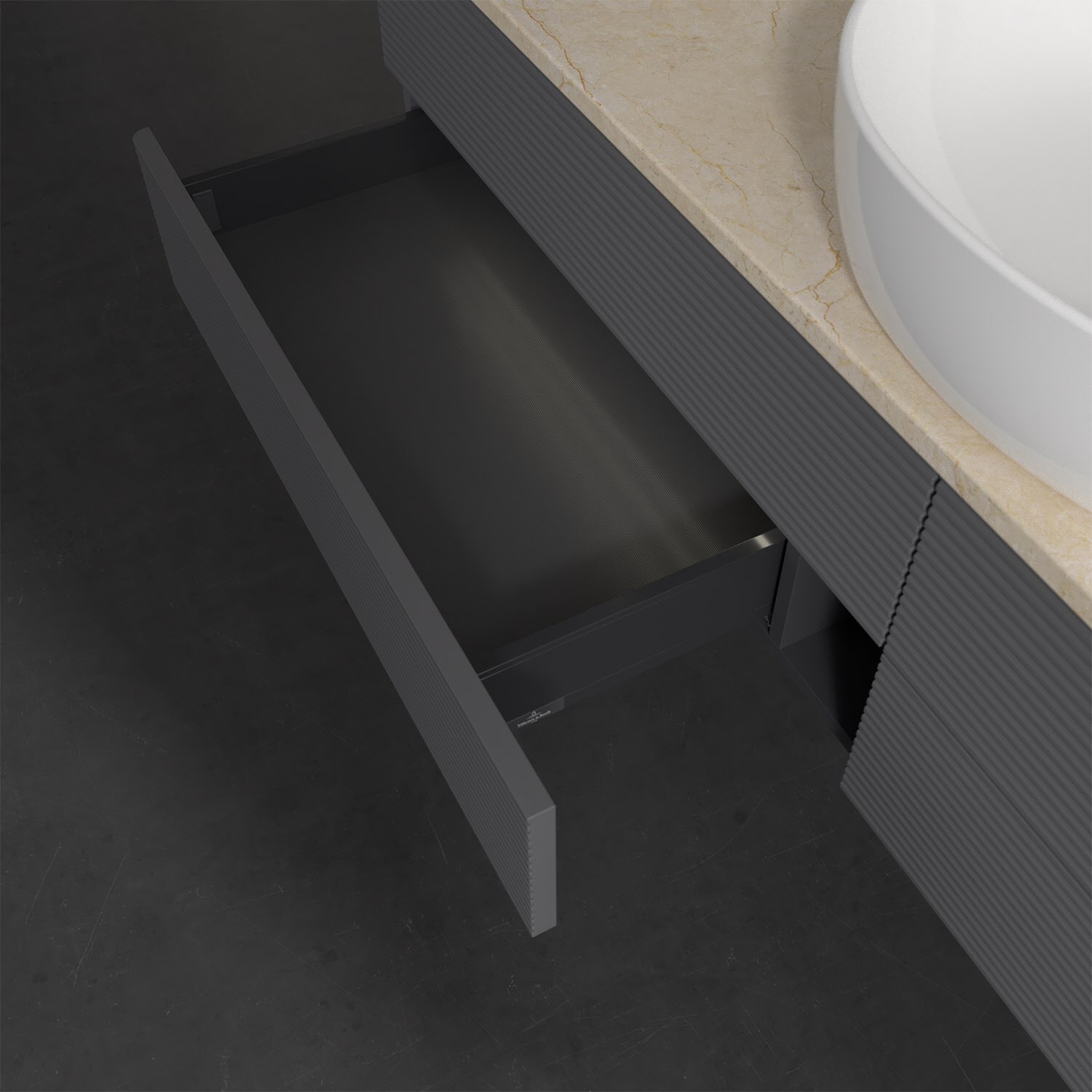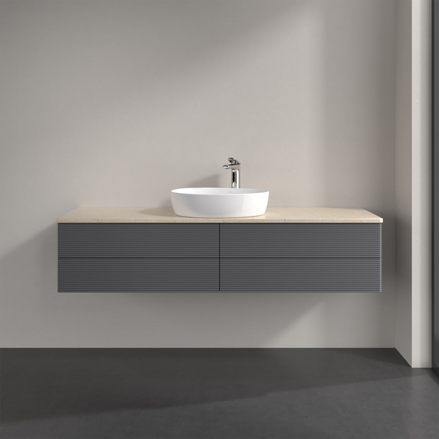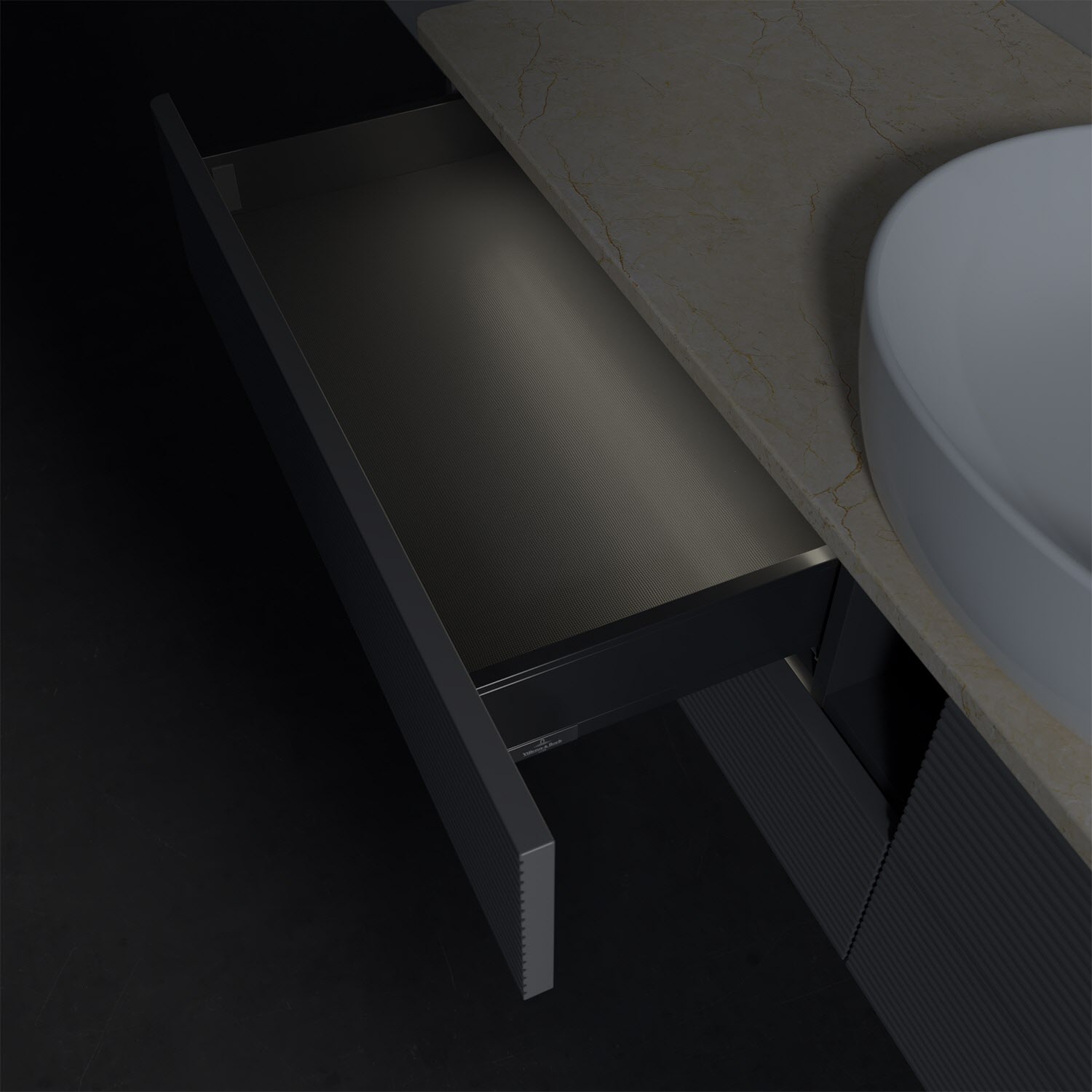 Villeroy & Boch Antao Waschbeckenunterschrank, 160 x 36 cm, 4 Auszüge mit LED-Licht, Front mit Struktur, mit Hahnloch, für Waschtisch mittig