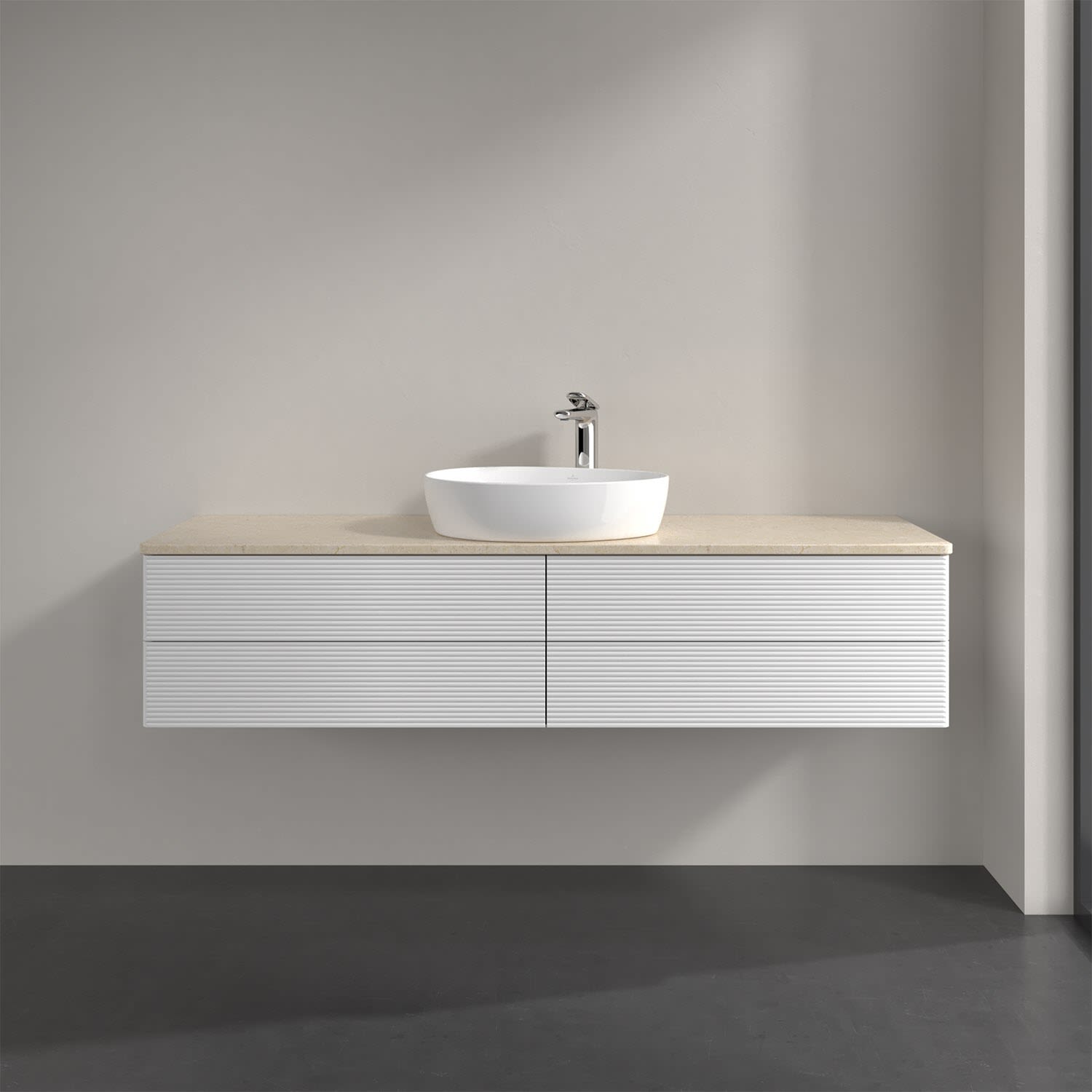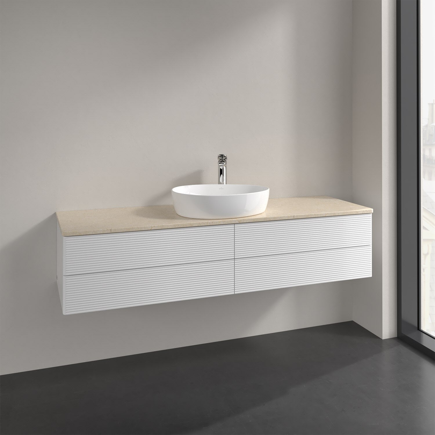 Villeroy & Boch Antao Waschbeckenunterschrank, 160 x 36 cm, 4 Auszüge mit LED-Licht, Front mit Struktur, mit Hahnloch, für Waschtisch mittig
