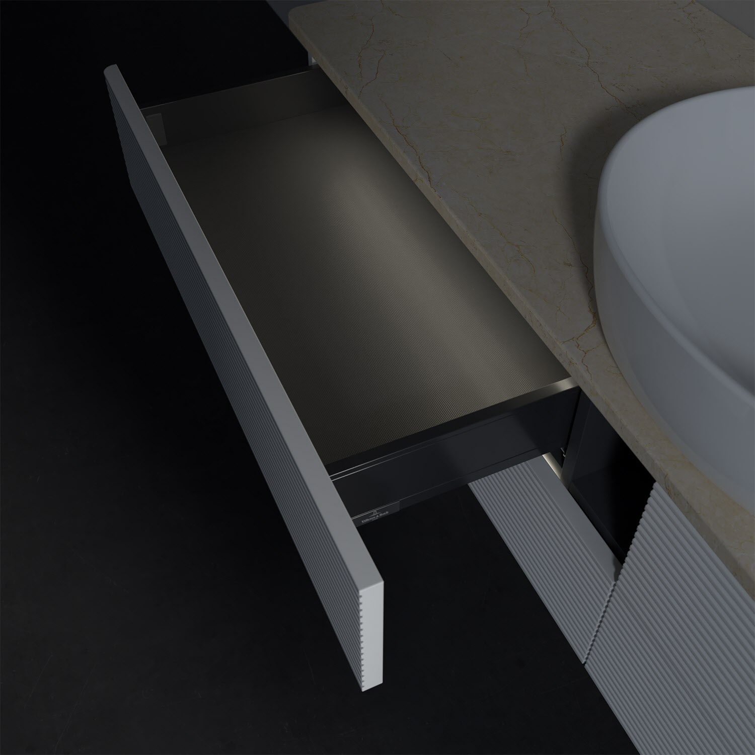 - kein Umfallen oder Verrutschen von Pflegeprodukten in den Schubladen dank rutschhemmendem Boden