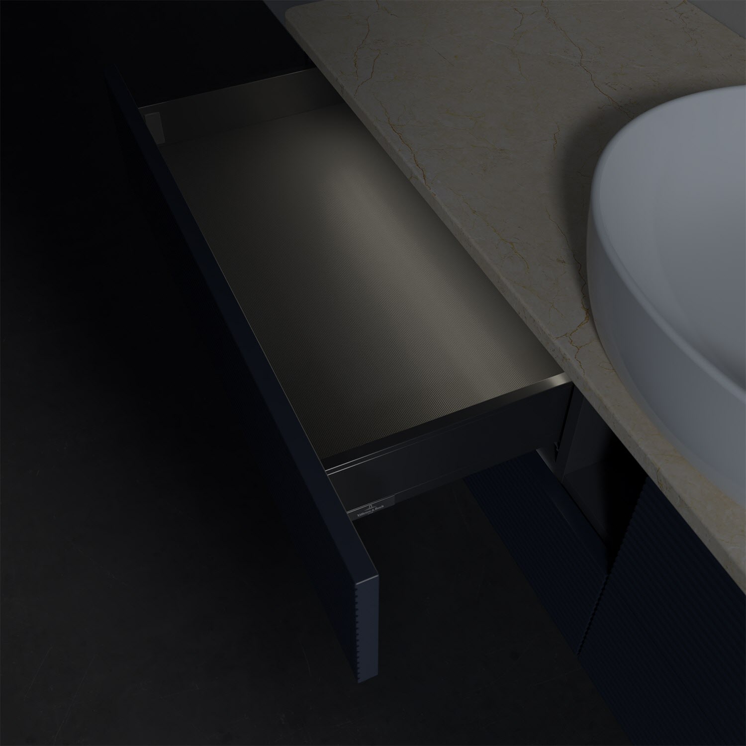 Villeroy & Boch Antao Waschbeckenunterschrank, 160 x 36 cm, 4 Auszüge mit LED-Licht, Front mit Struktur, mit Hahnloch, für Waschtisch mittig