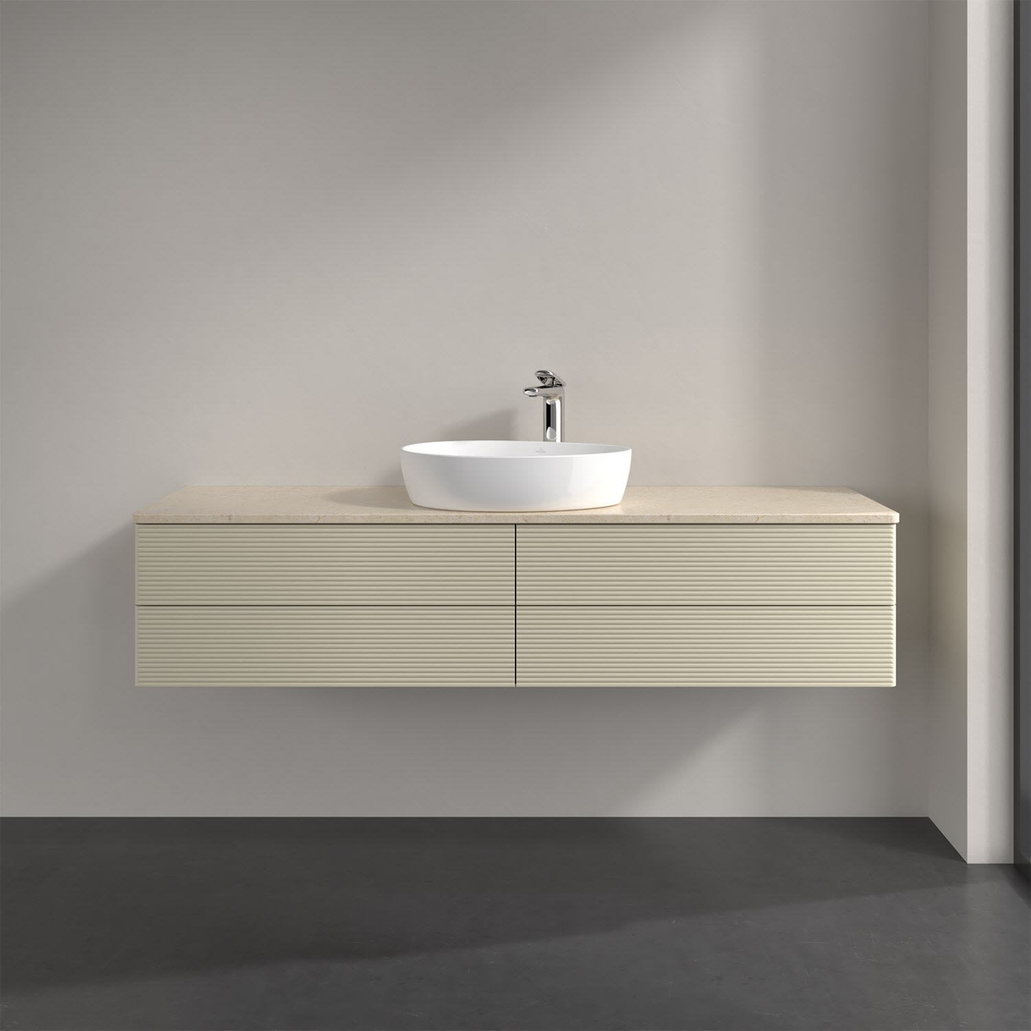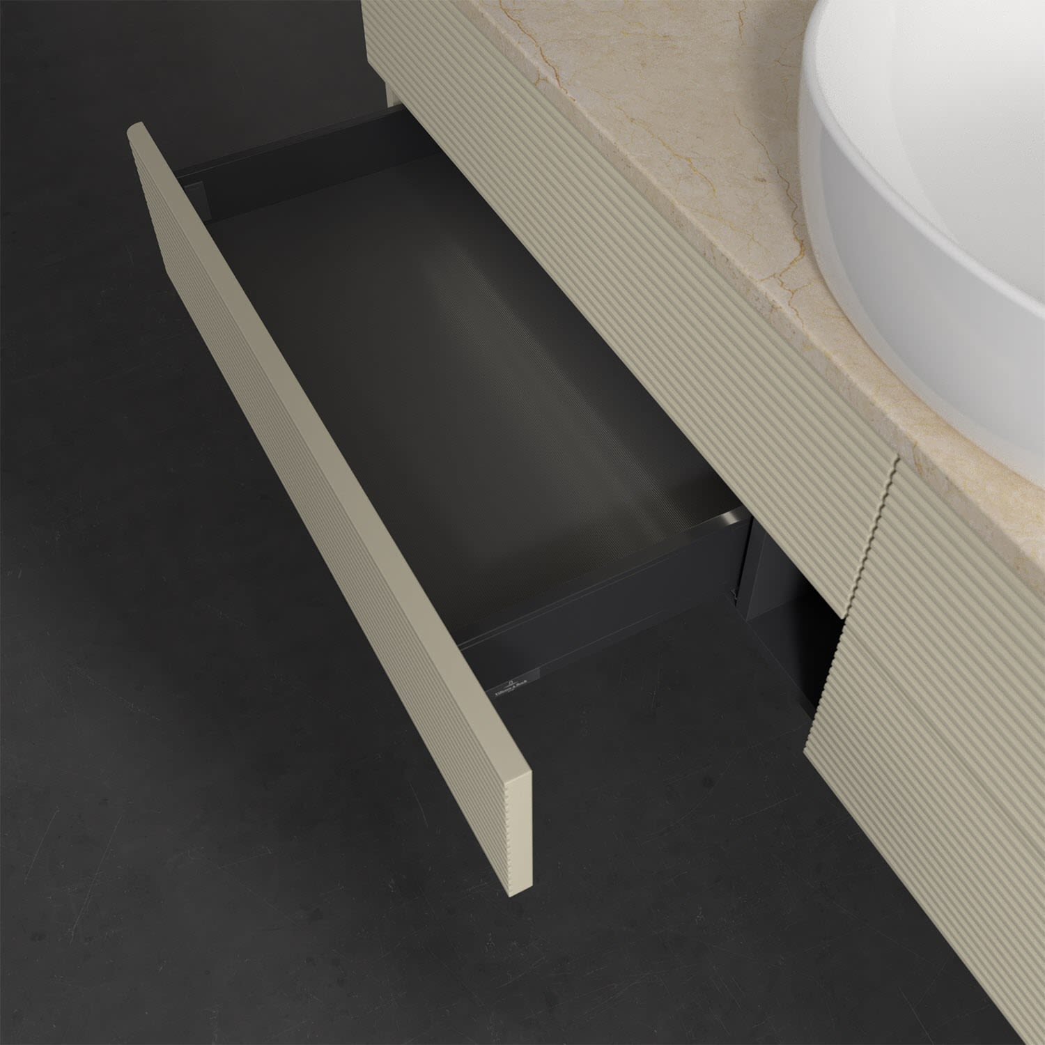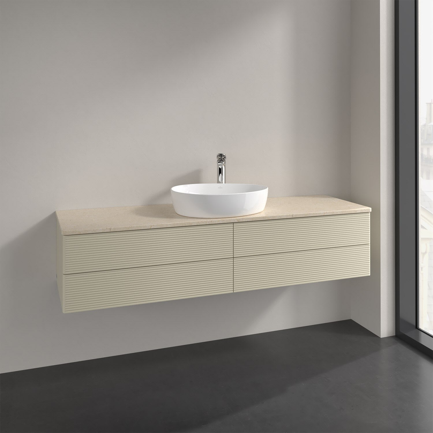 Villeroy & Boch Antao Waschbeckenunterschrank, 160 x 36 cm, 4 Auszüge mit LED-Licht, Front mit Struktur, mit Hahnloch, für Waschtisch mittig