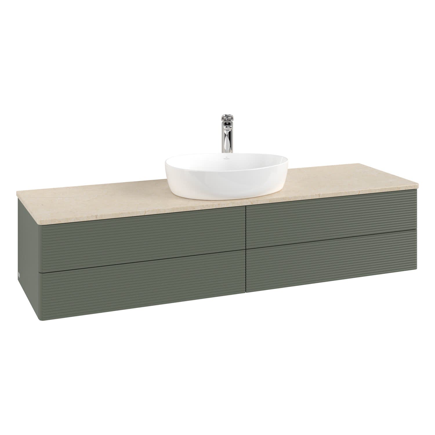 Villeroy & Boch Antao Waschbeckenunterschrank, 160 x 36 cm, 4 Auszüge mit LED-Licht, Front mit Struktur, mit Hahnloch, für Waschtisch mittig