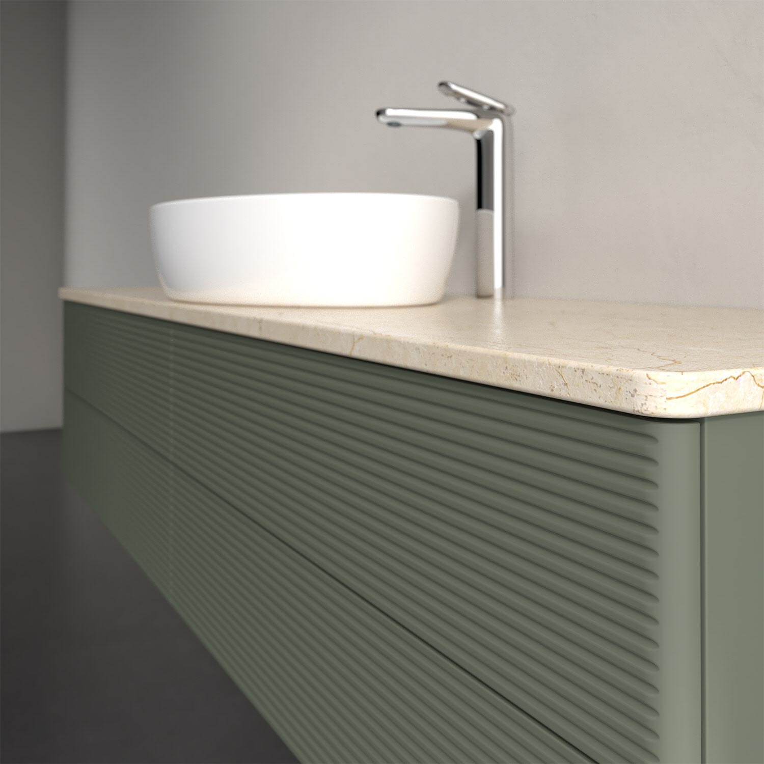 Für diesen Waschbeckenunterschrank stehen Ihnen Aufsatzwaschtische aus verschiedenen Serien zur Verfügung (siehe "Passliste" unter Downloads). Ein ausgewähltes Beispiel finden Sie im Zubehör. Den Waschtisch bitte separat mitbestellen.