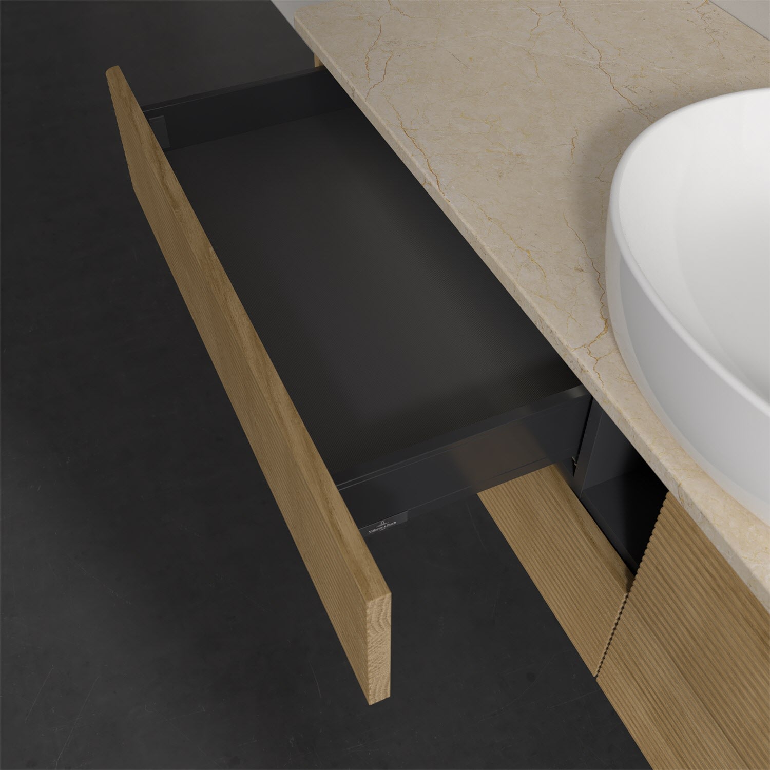 Villeroy & Boch Antao Waschbeckenunterschrank, 160 x 36 cm, 4 Auszüge mit LED-Licht, Front mit Struktur, mit Hahnloch, für Waschtisch mittig
