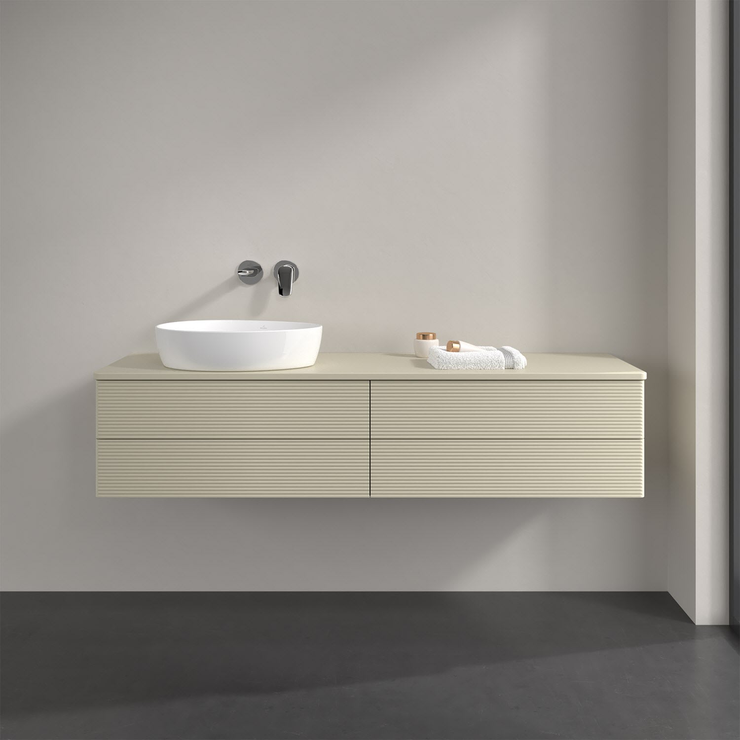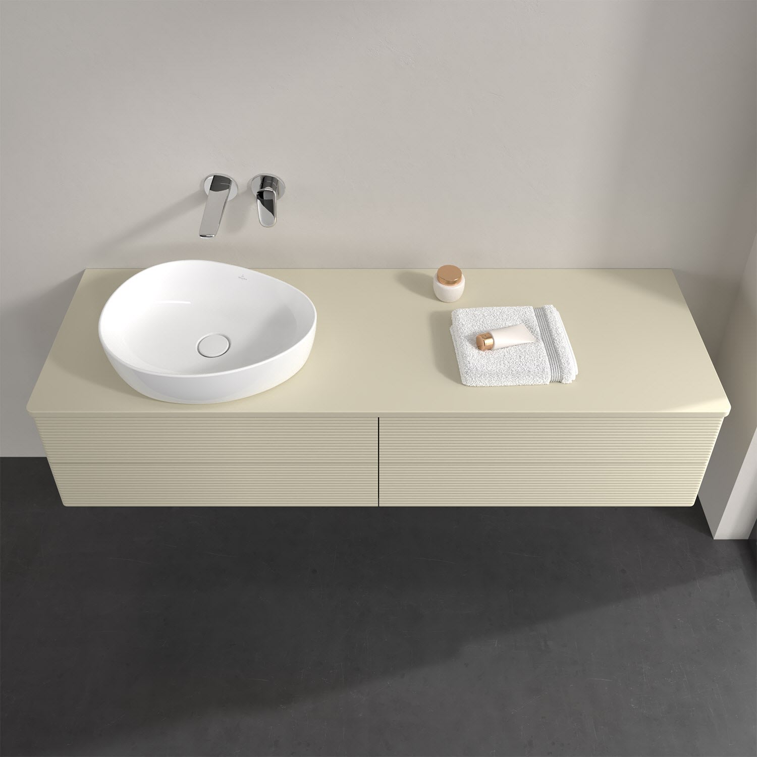 Villeroy & Boch Antao Waschbeckenunterschrank, 160 x 36 cm, 4 Auszüge mit LED-Licht, Front mit Struktur, mit Hahnloch, für Waschtisch links