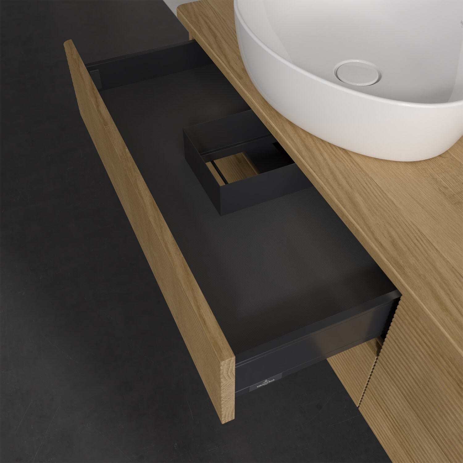 Villeroy & Boch Antao Waschbeckenunterschrank, 160 x 36 cm, 4 Auszüge mit LED-Licht, Front mit Struktur, mit Hahnloch, für Waschtisch links