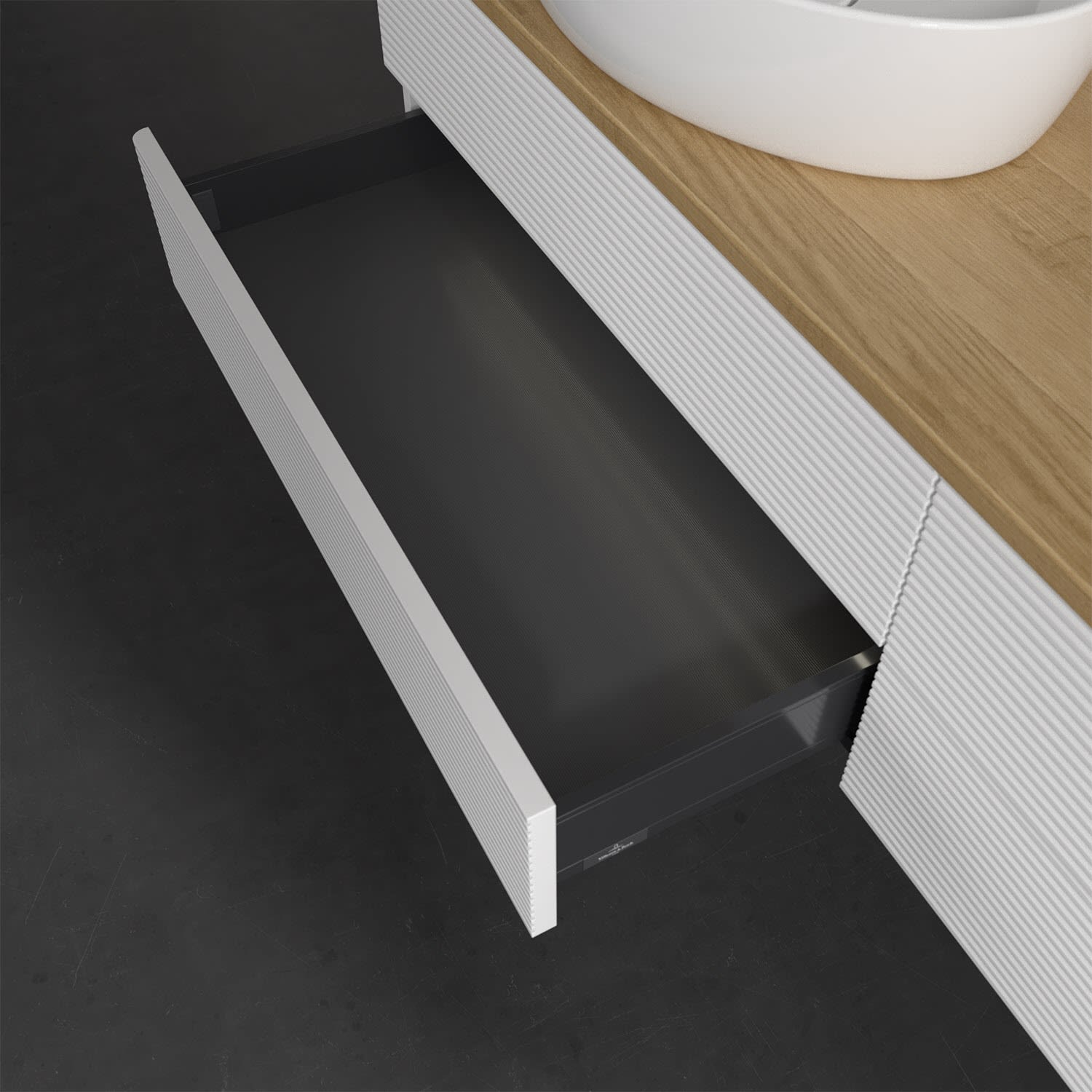 Villeroy & Boch Antao Waschbeckenunterschrank, 160 x 36 cm, 4 Auszüge mit LED-Licht, Front mit Struktur, mit Hahnloch, für Waschtisch links