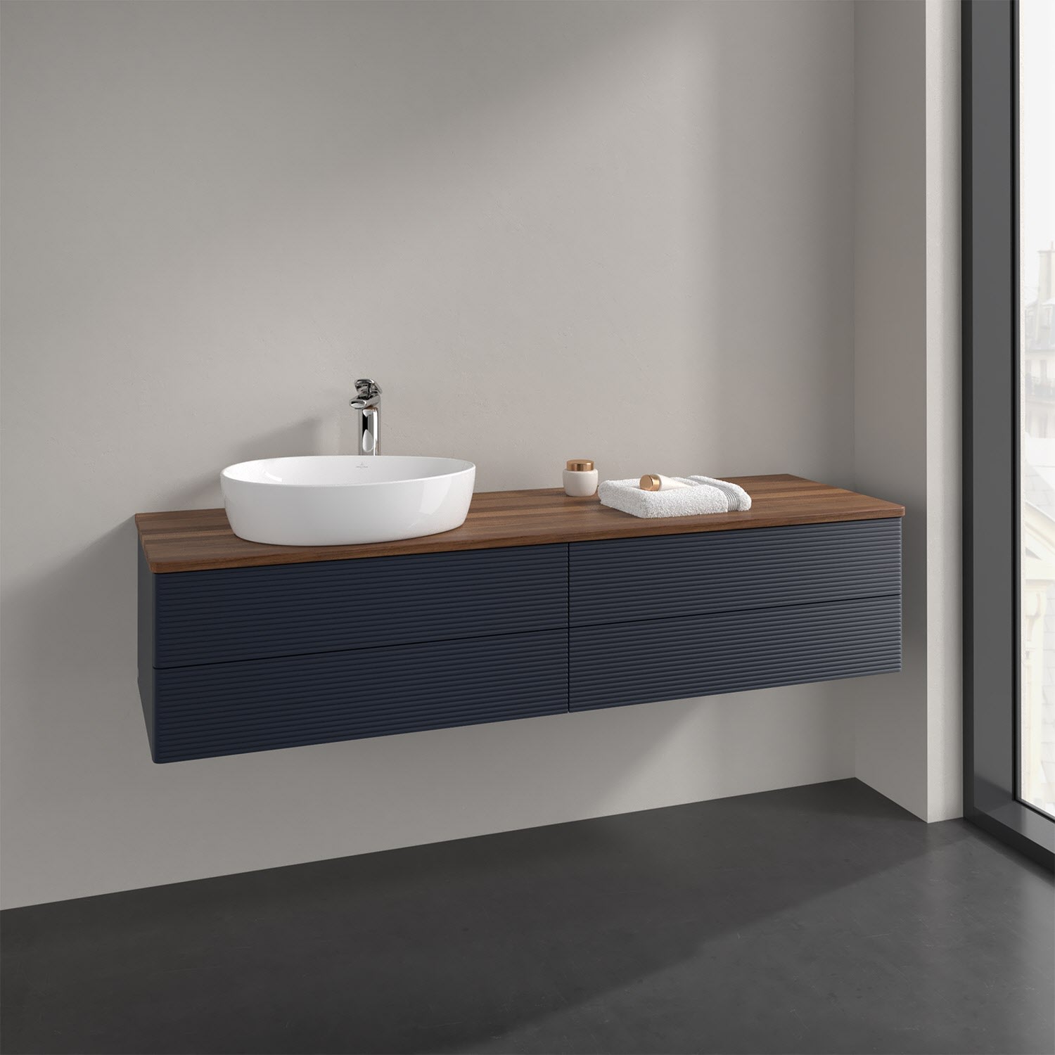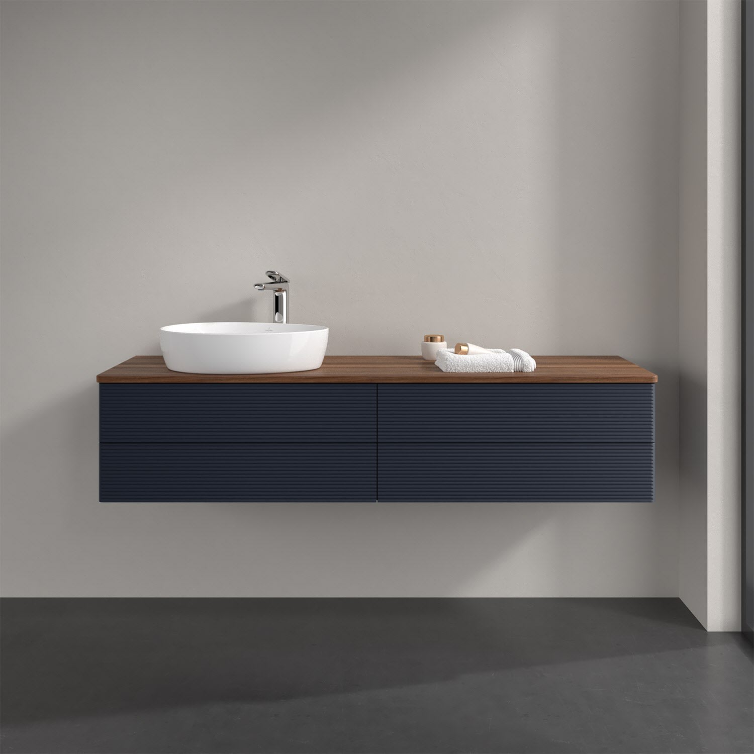 Villeroy & Boch Antao Waschbeckenunterschrank, 160 x 36 cm, 4 Auszüge mit LED-Licht, Front mit Struktur, mit Hahnloch, für Waschtisch links