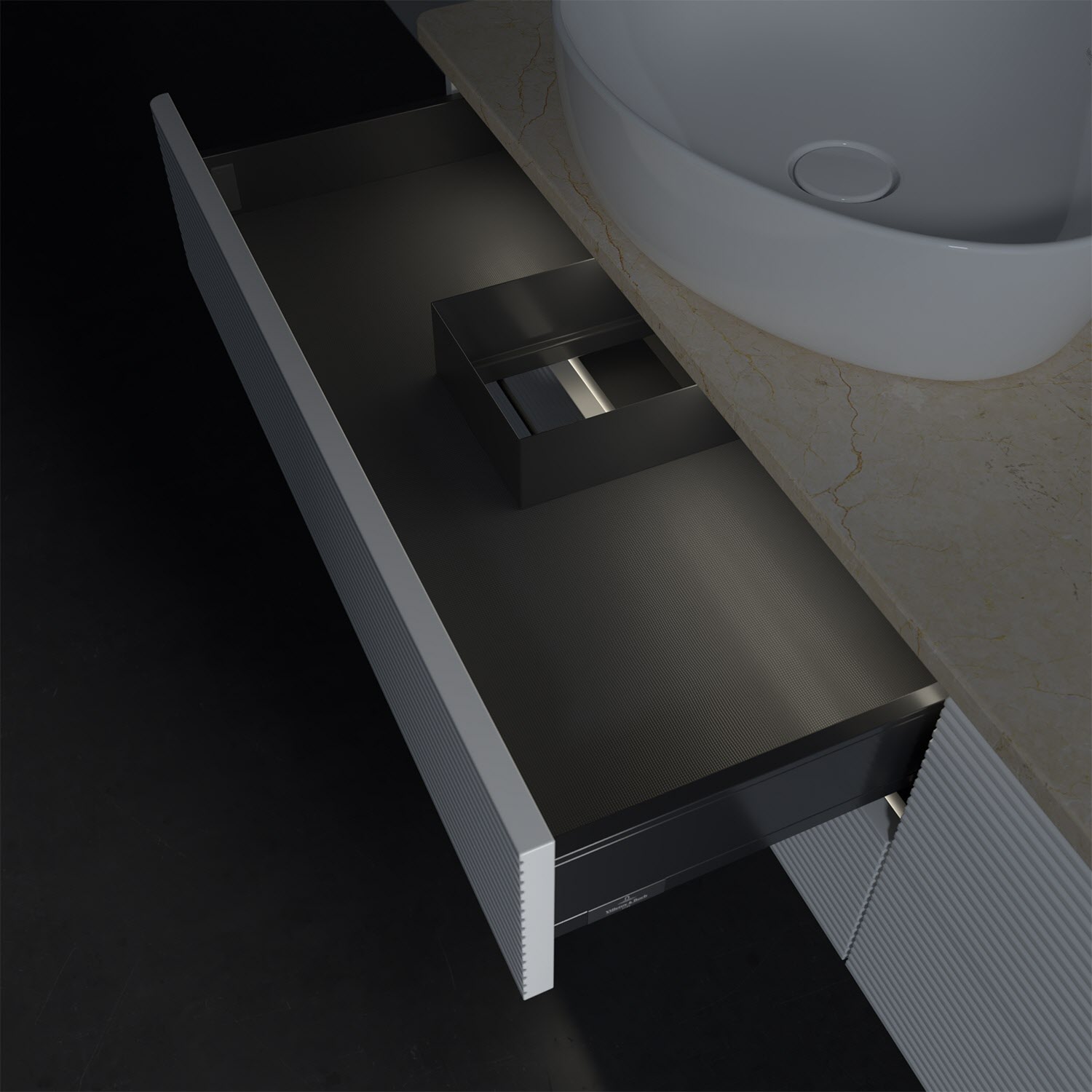 Villeroy & Boch Antao Waschbeckenunterschrank, 160 x 36 cm, 4 Auszüge mit LED-Licht, Front mit Struktur, mit Hahnloch, für Waschtisch links