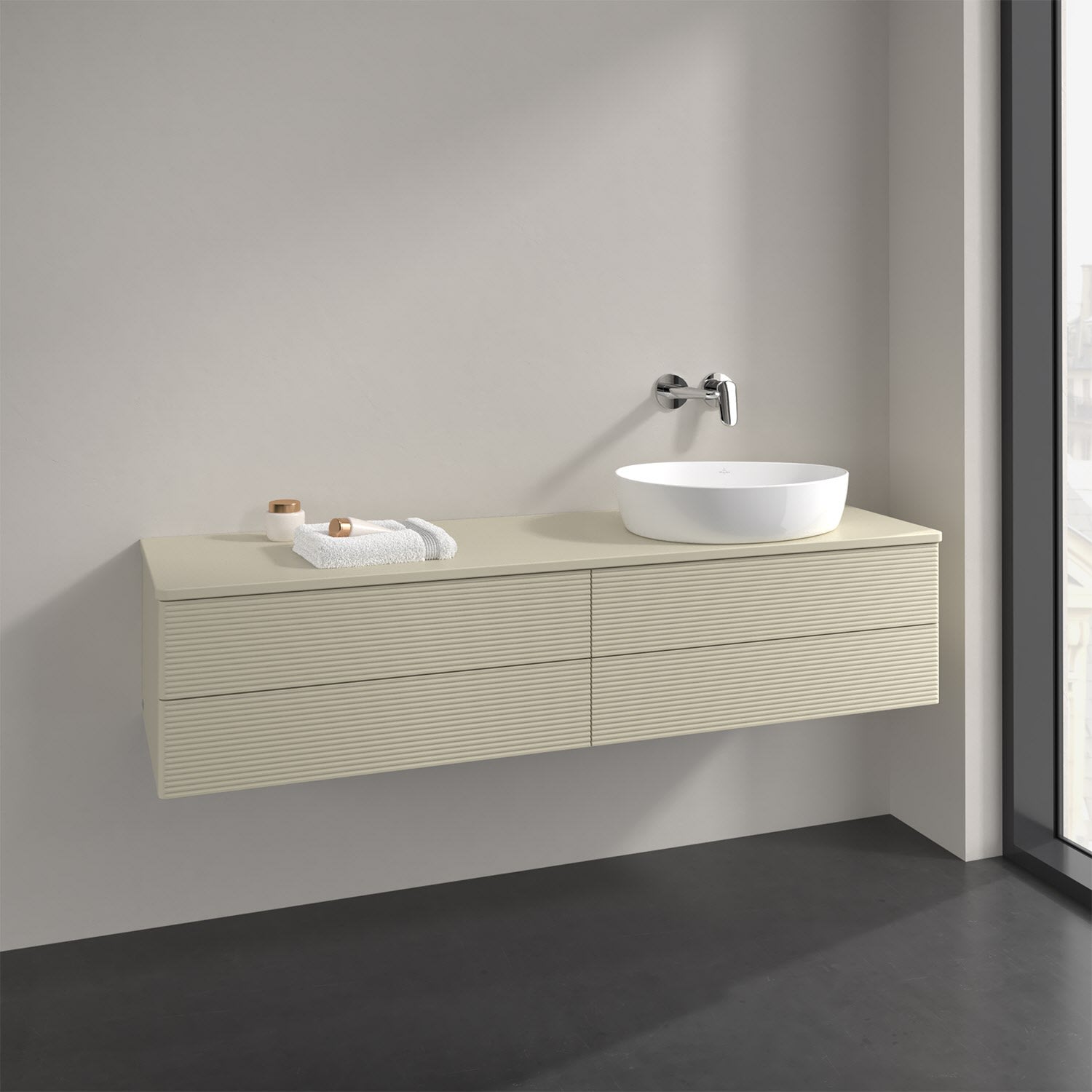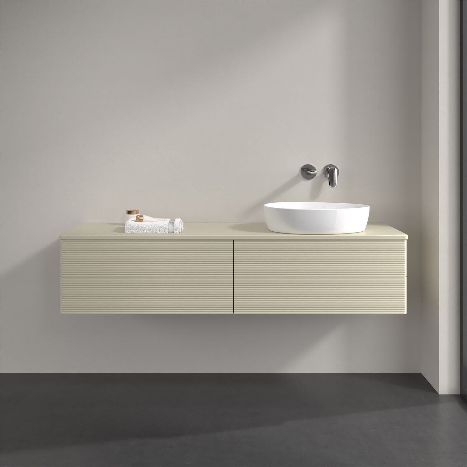 Villeroy & Boch Antao Waschbeckenunterschrank, 160 x 36 cm, 4 Auszüge mit LED-Licht, Front mit Struktur, mit Hahnloch, für Waschtisch rechts