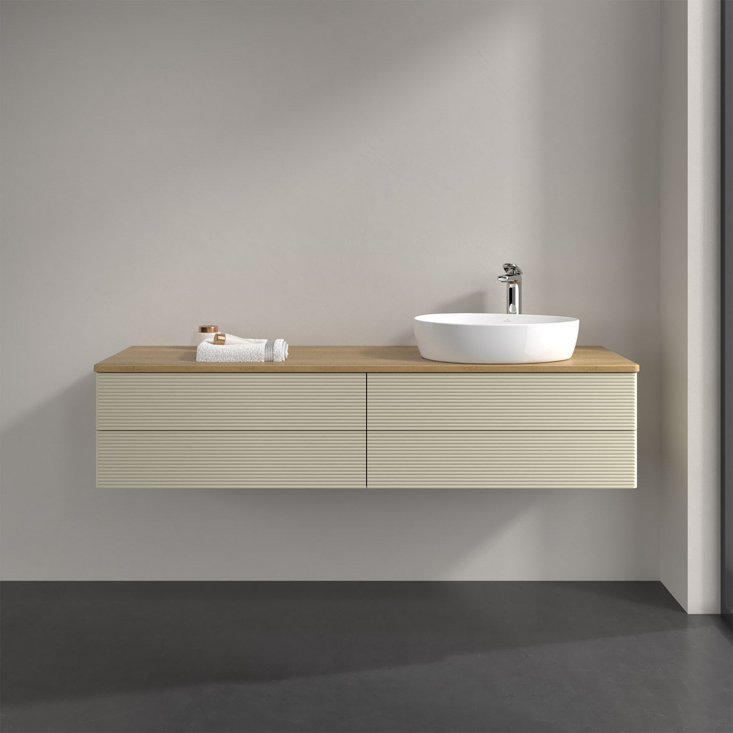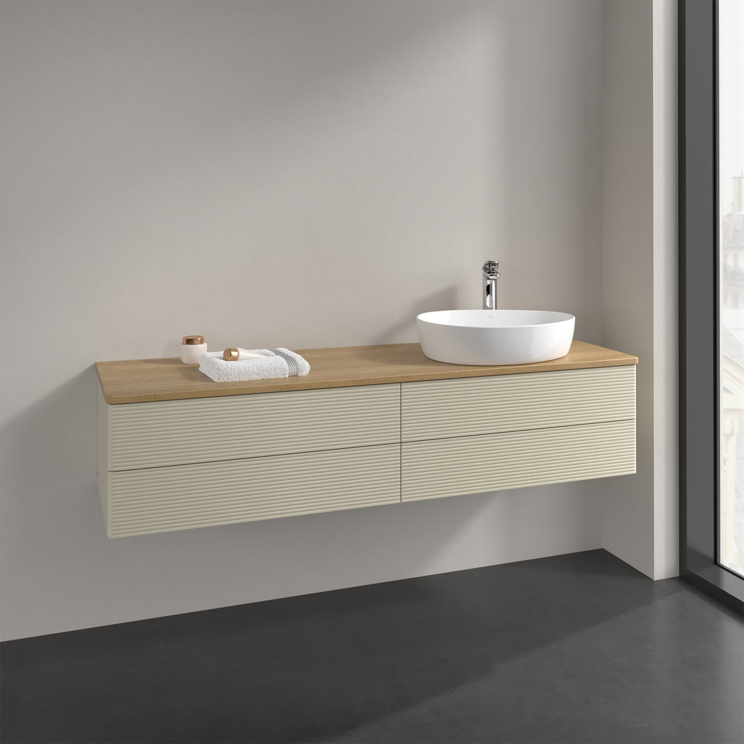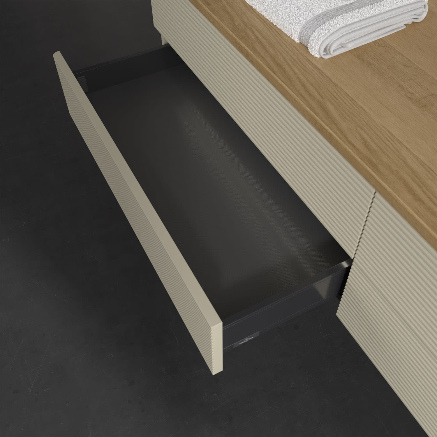 Villeroy & Boch Antao Waschbeckenunterschrank, 160 x 36 cm, 4 Auszüge mit LED-Licht, Front mit Struktur, mit Hahnloch, für Waschtisch rechts