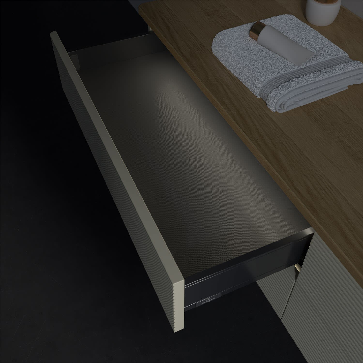 - kein Umfallen oder Verrutschen von Pflegeprodukten in den Schubladen dank rutschhemmendem Boden
