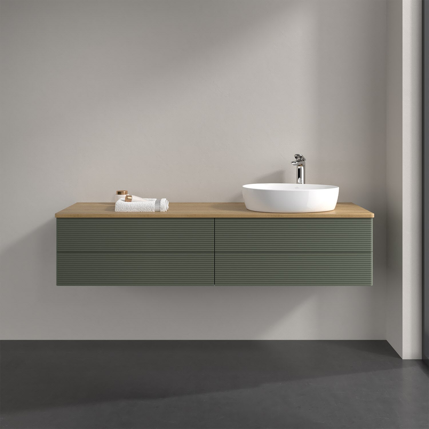 Villeroy & Boch Antao Waschbeckenunterschrank, 160 x 36 cm, 4 Auszüge mit LED-Licht, Front mit Struktur, mit Hahnloch, für Waschtisch rechts
