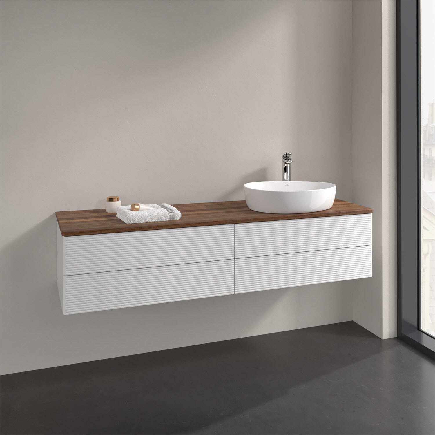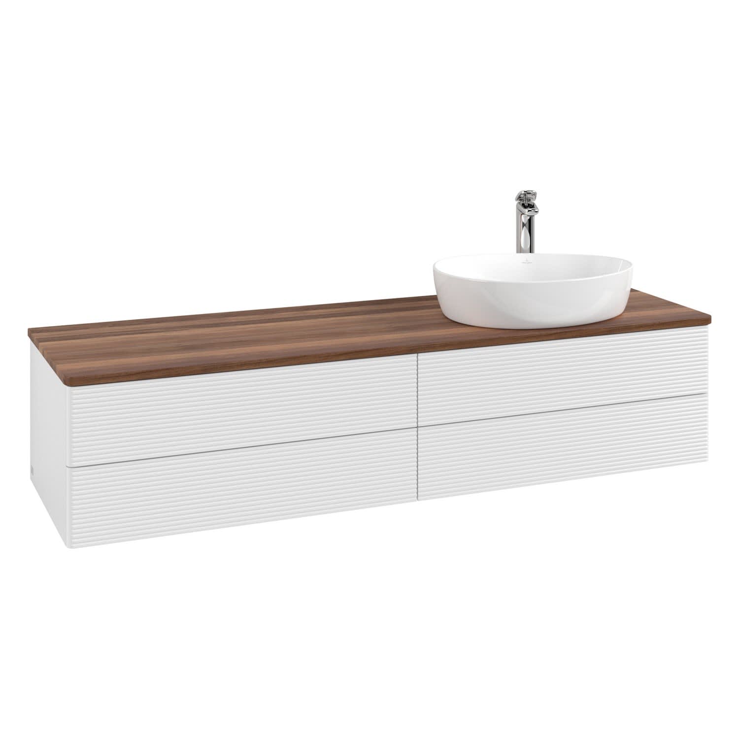 Villeroy & Boch Antao Waschbeckenunterschrank, 160 x 36 cm, 4 Auszüge mit LED-Licht, Front mit Struktur, mit Hahnloch, für Waschtisch rechts