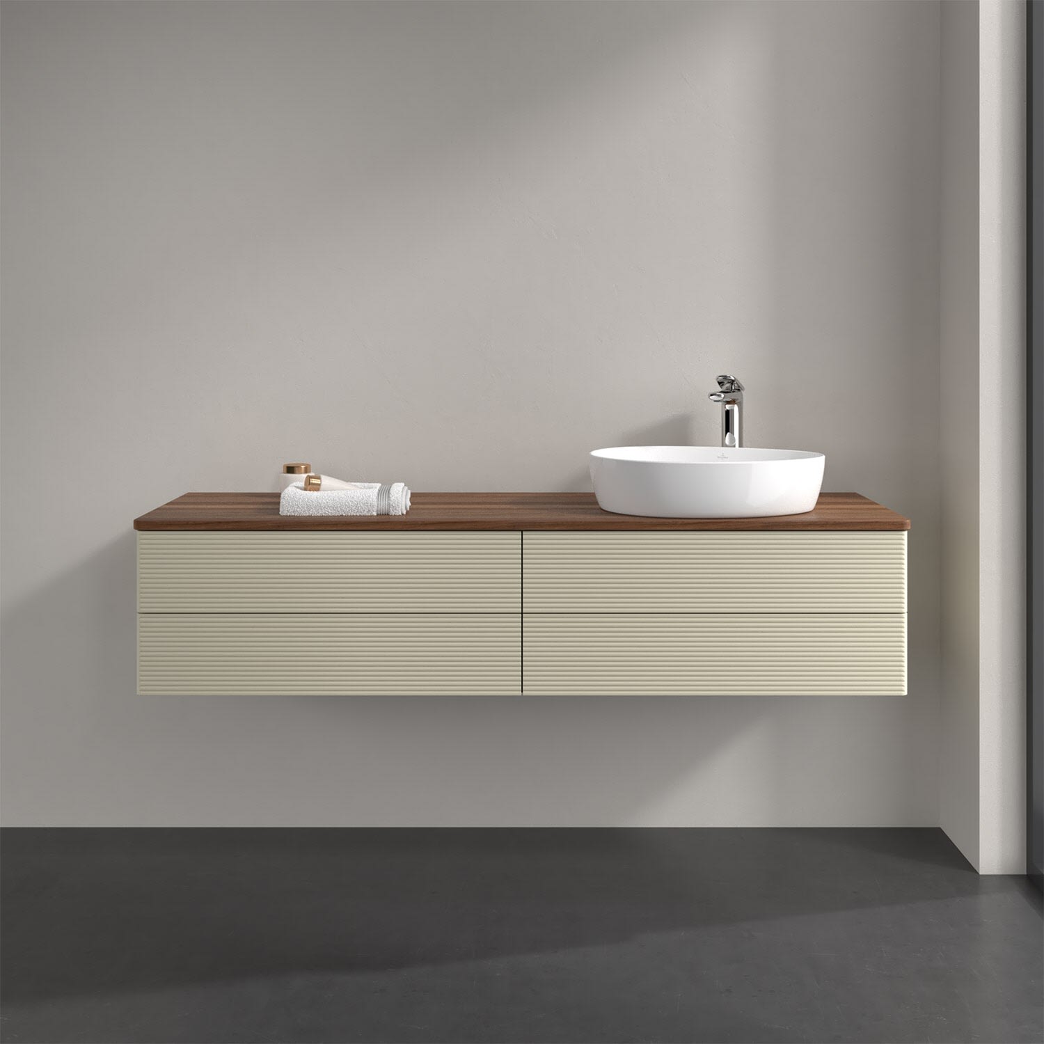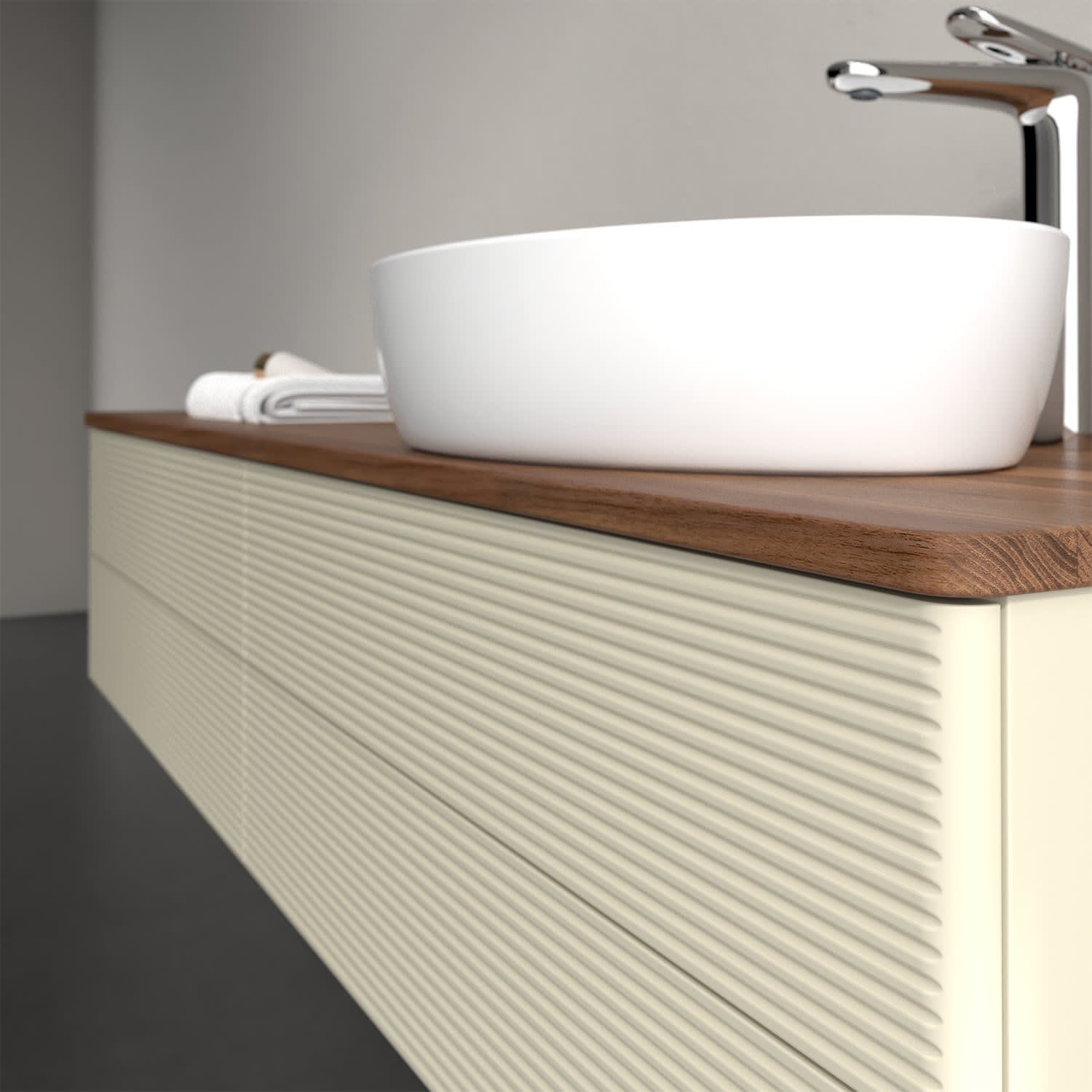 Villeroy & Boch Antao Waschbeckenunterschrank, 160 x 36 cm, 4 Auszüge mit LED-Licht, Front mit Struktur, mit Hahnloch, für Waschtisch rechts