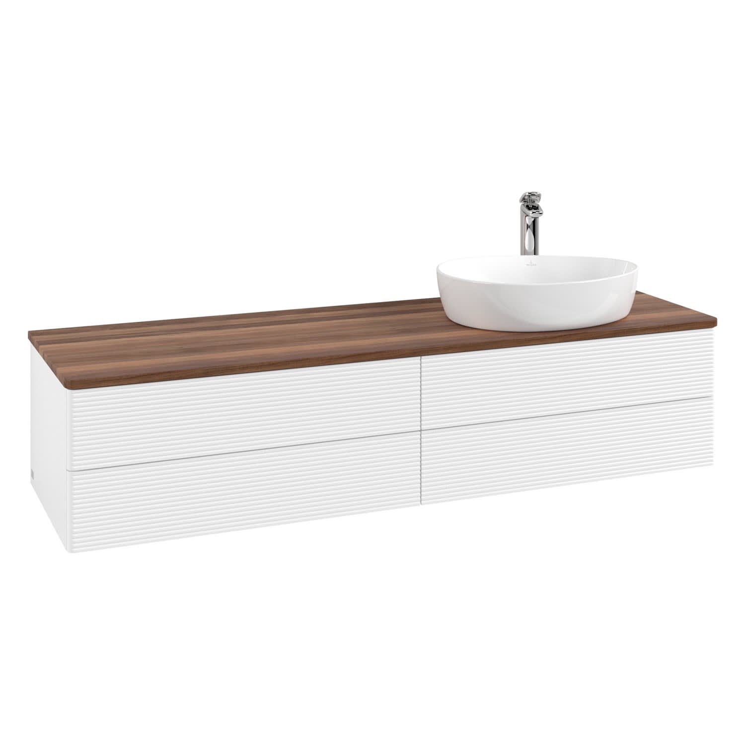 Villeroy & Boch Antao Waschbeckenunterschrank, 160 x 36 cm, 4 Auszüge mit LED-Licht, Front mit Struktur, mit Hahnloch, für Waschtisch rechts