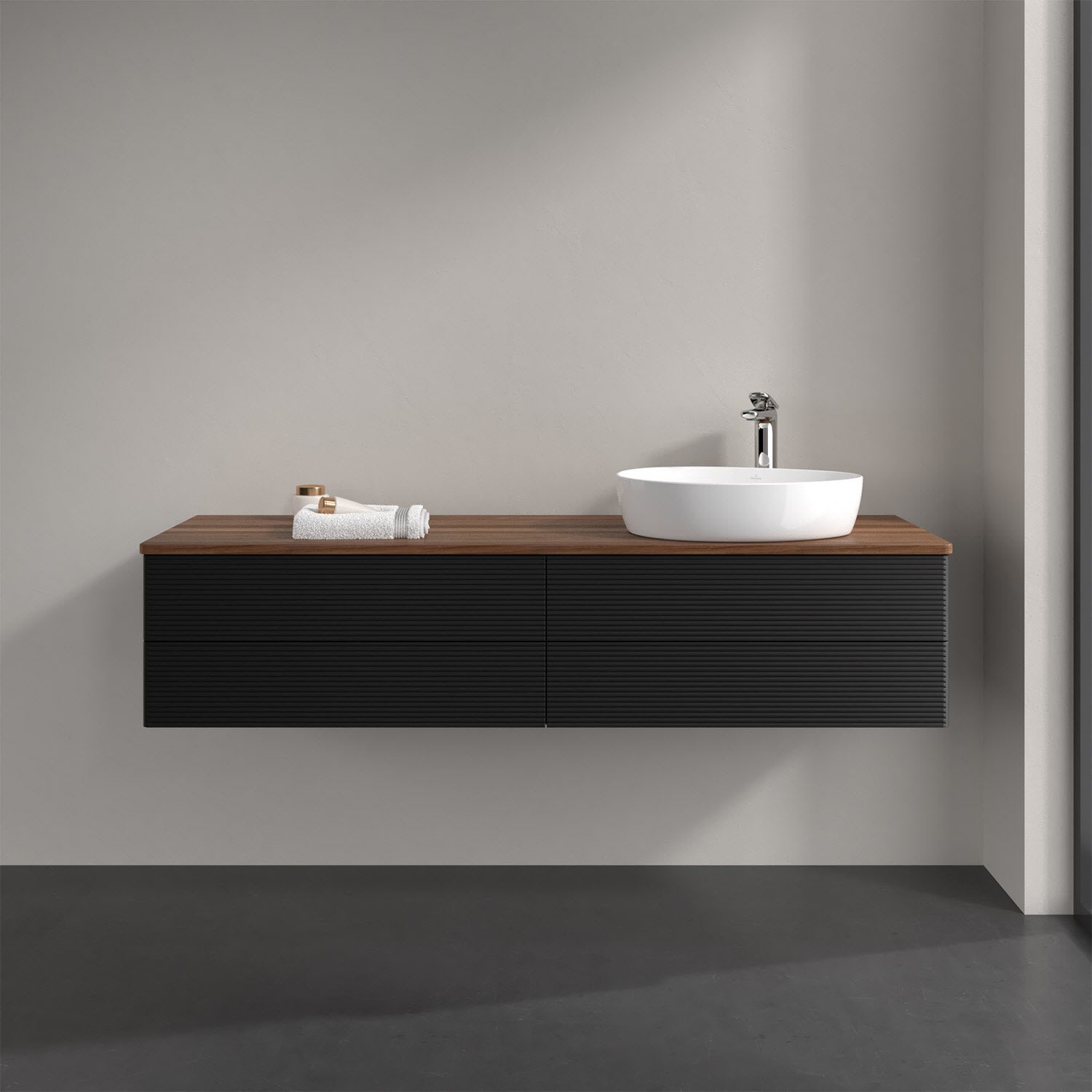 Villeroy & Boch Antao Waschbeckenunterschrank, 160 x 36 cm, 4 Auszüge mit LED-Licht, Front mit Struktur, mit Hahnloch, für Waschtisch rechts