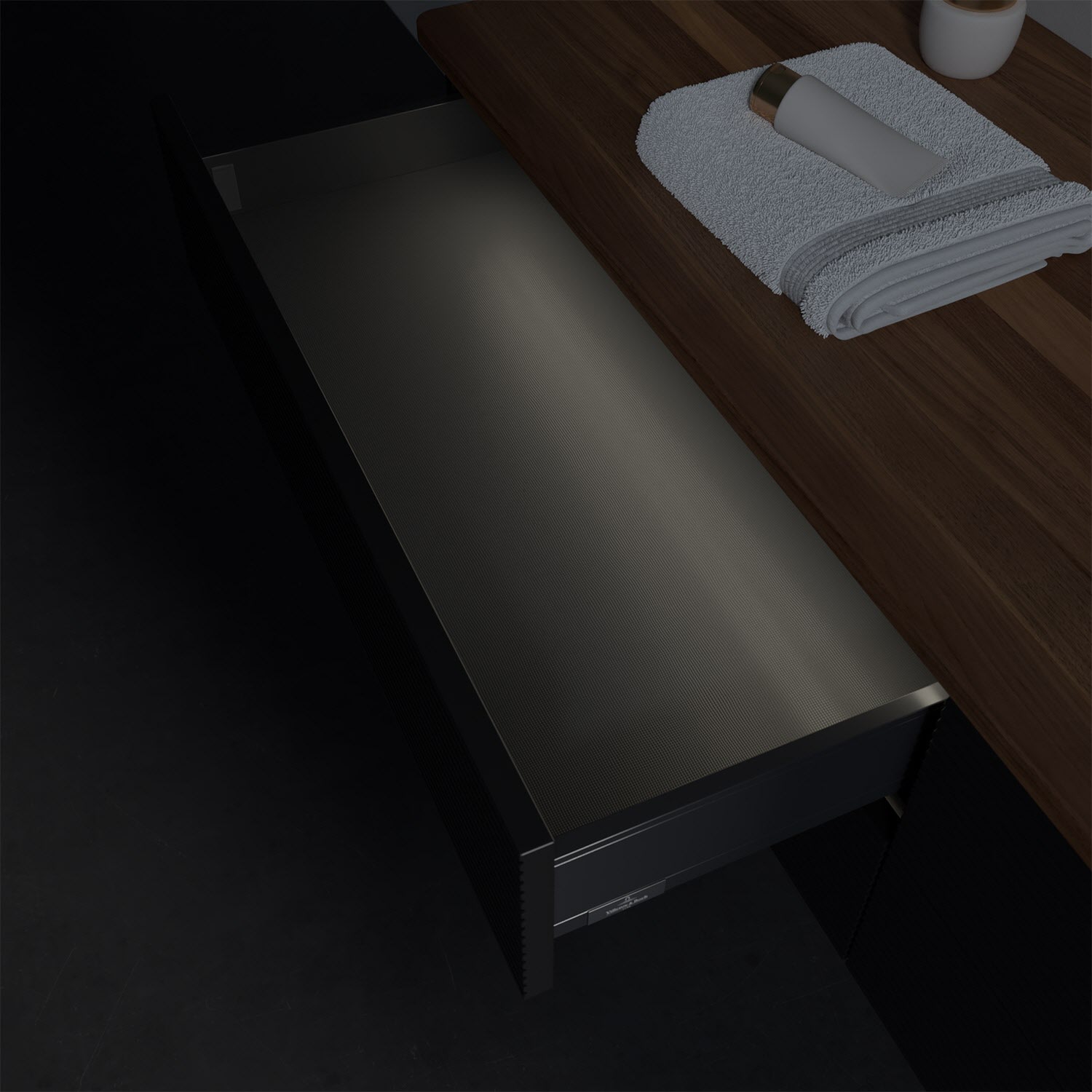 - kein Umfallen oder Verrutschen von Pflegeprodukten in den Schubladen dank rutschhemmendem Boden