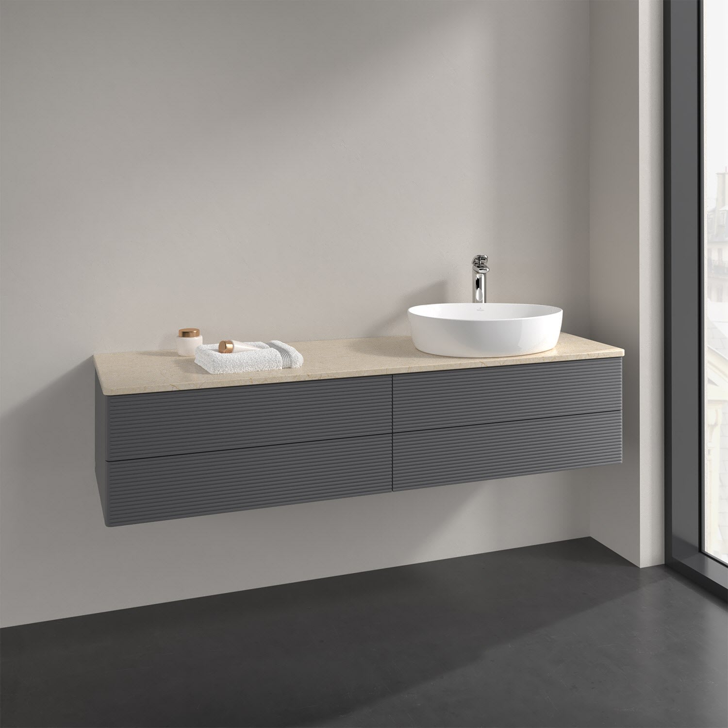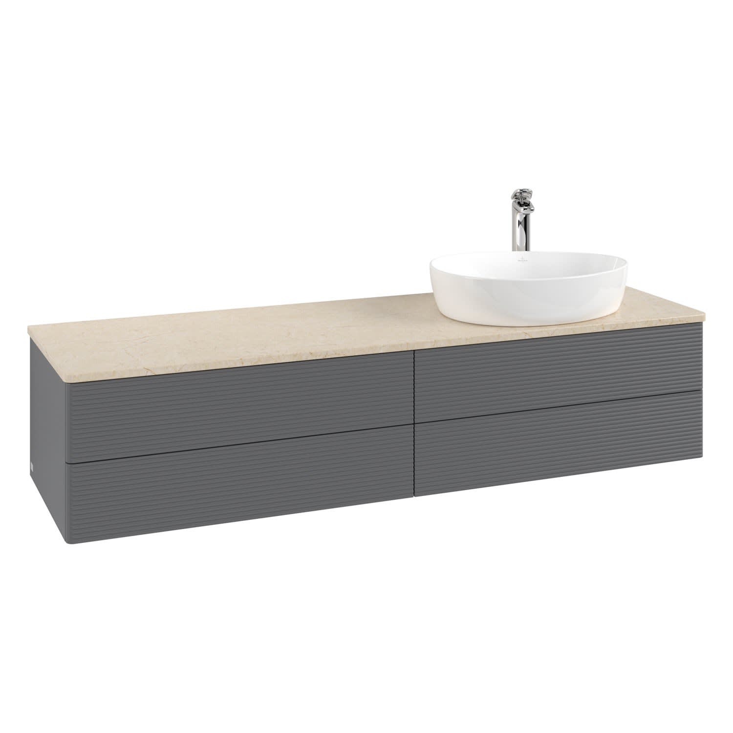 Villeroy & Boch Antao Waschbeckenunterschrank, 160 x 36 cm, 4 Auszüge mit LED-Licht, Front mit Struktur, mit Hahnloch, für Waschtisch rechts