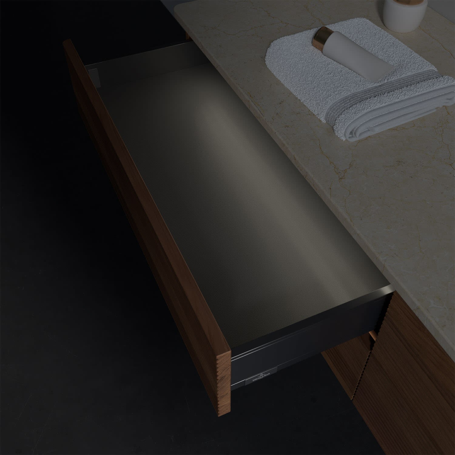 - kein Umfallen oder Verrutschen von Pflegeprodukten in den Schubladen dank rutschhemmendem Boden