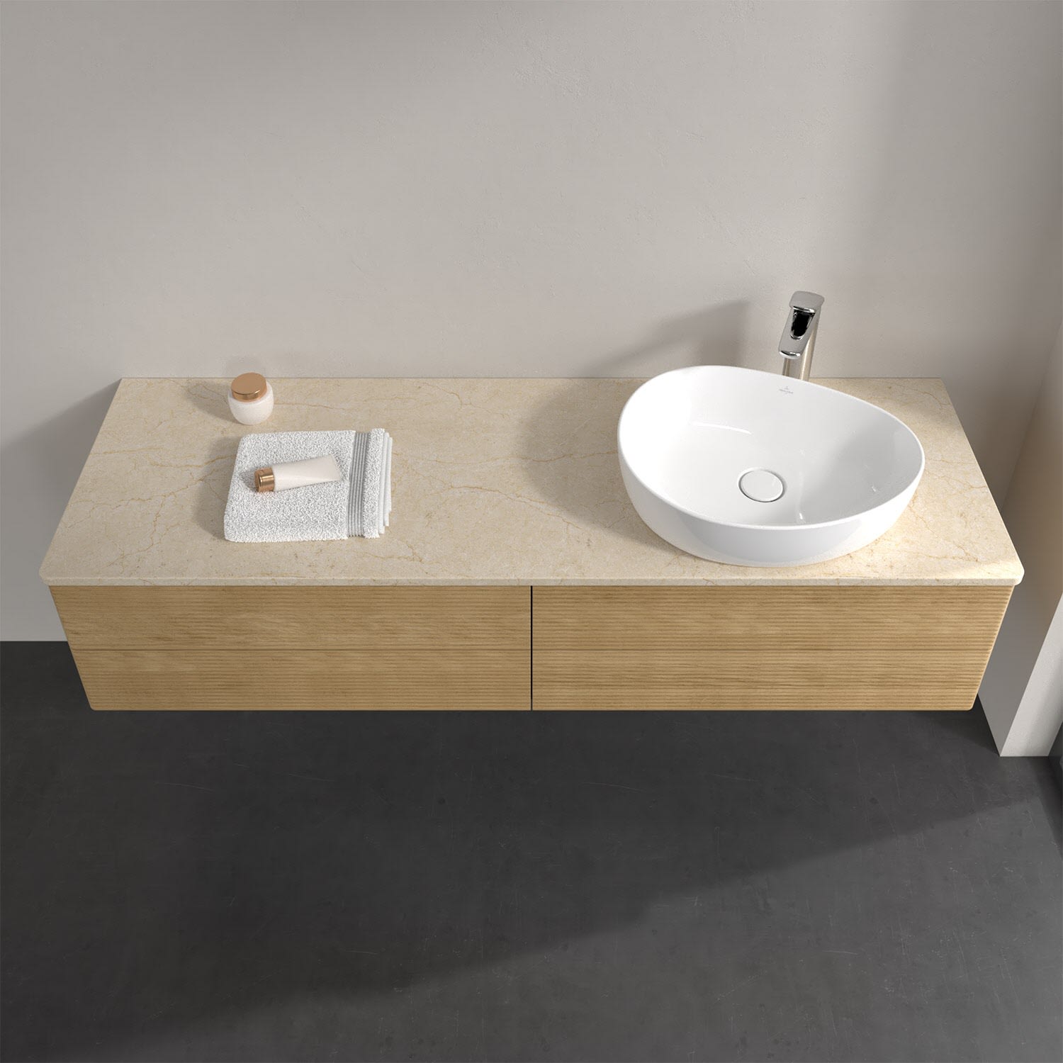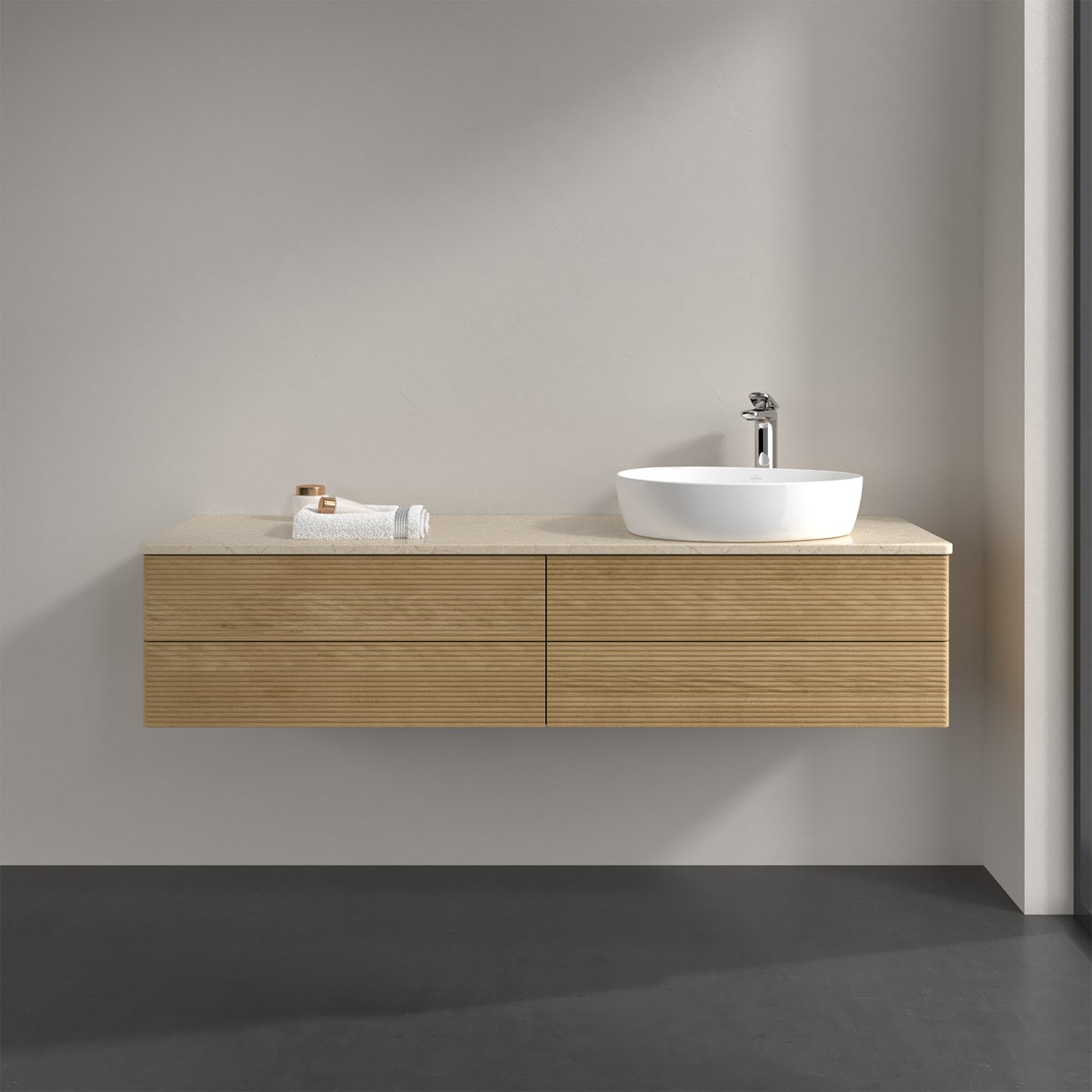 Villeroy & Boch Antao Waschbeckenunterschrank, 160 x 36 cm, 4 Auszüge mit LED-Licht, Front mit Struktur, mit Hahnloch, für Waschtisch rechts