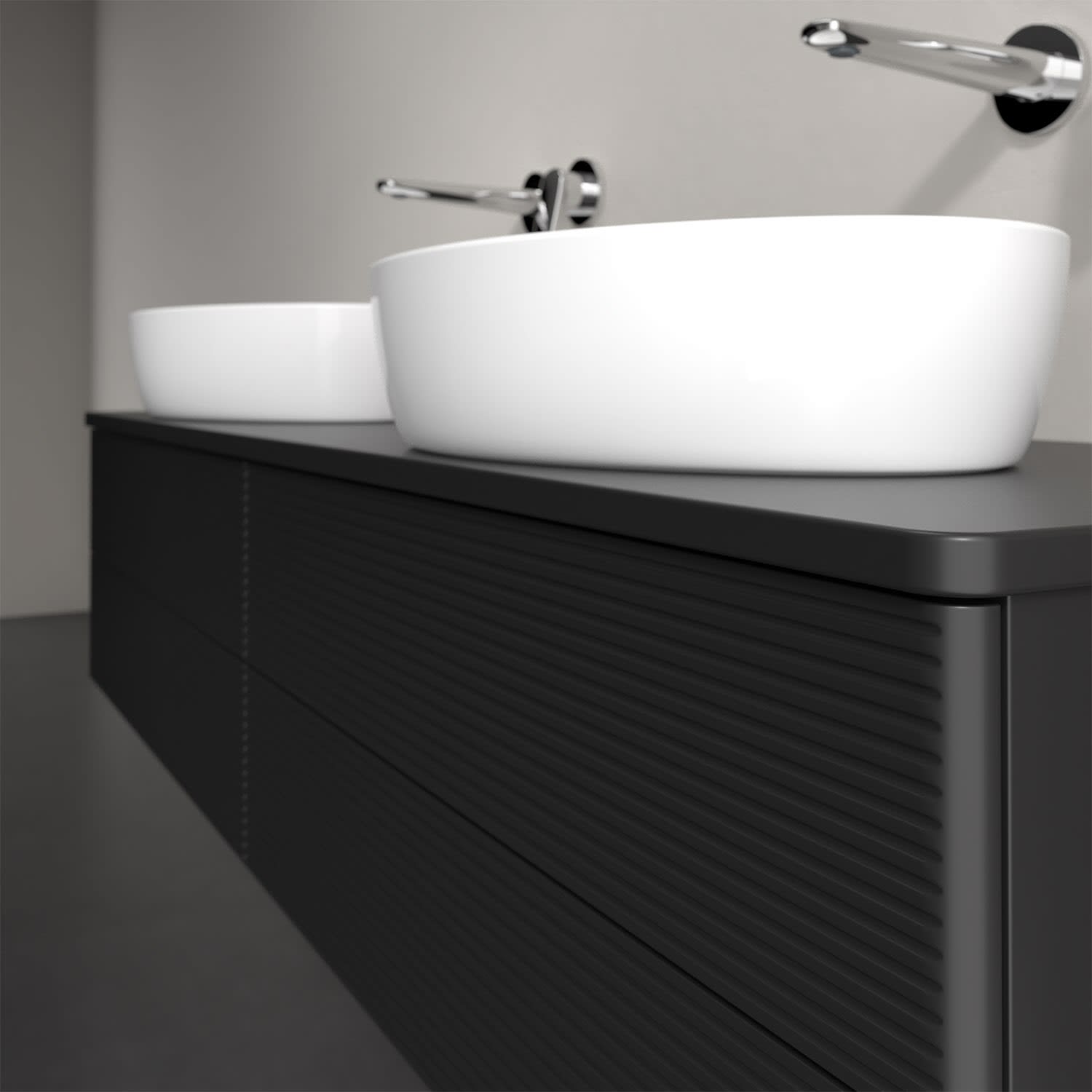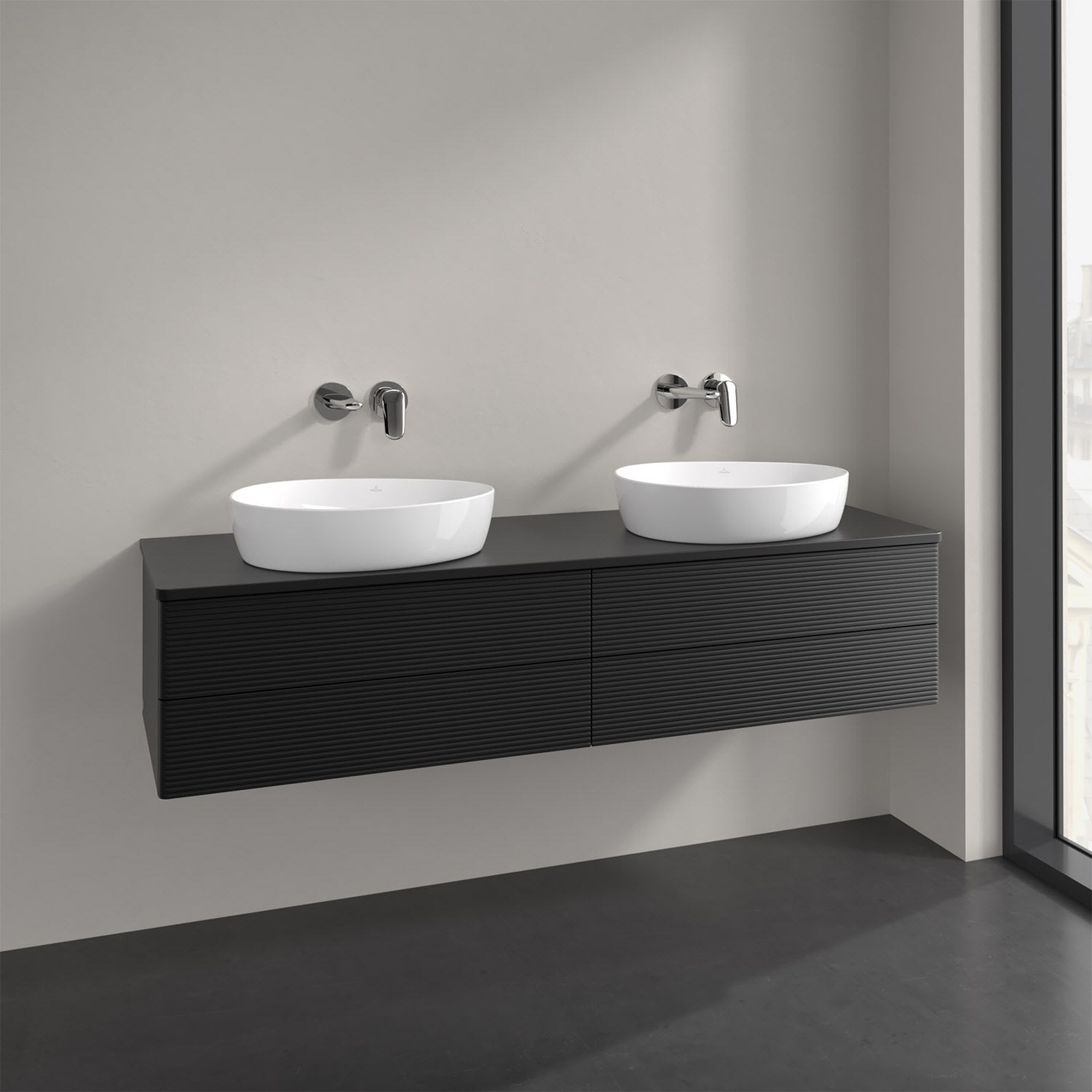 Villeroy & Boch Antao Waschbeckenunterschrank, 160 x 36 cm, 4 Auszüge mit LED-Licht, Front mit Struktur, mit Hahnloch, für Waschtisch links und rechts