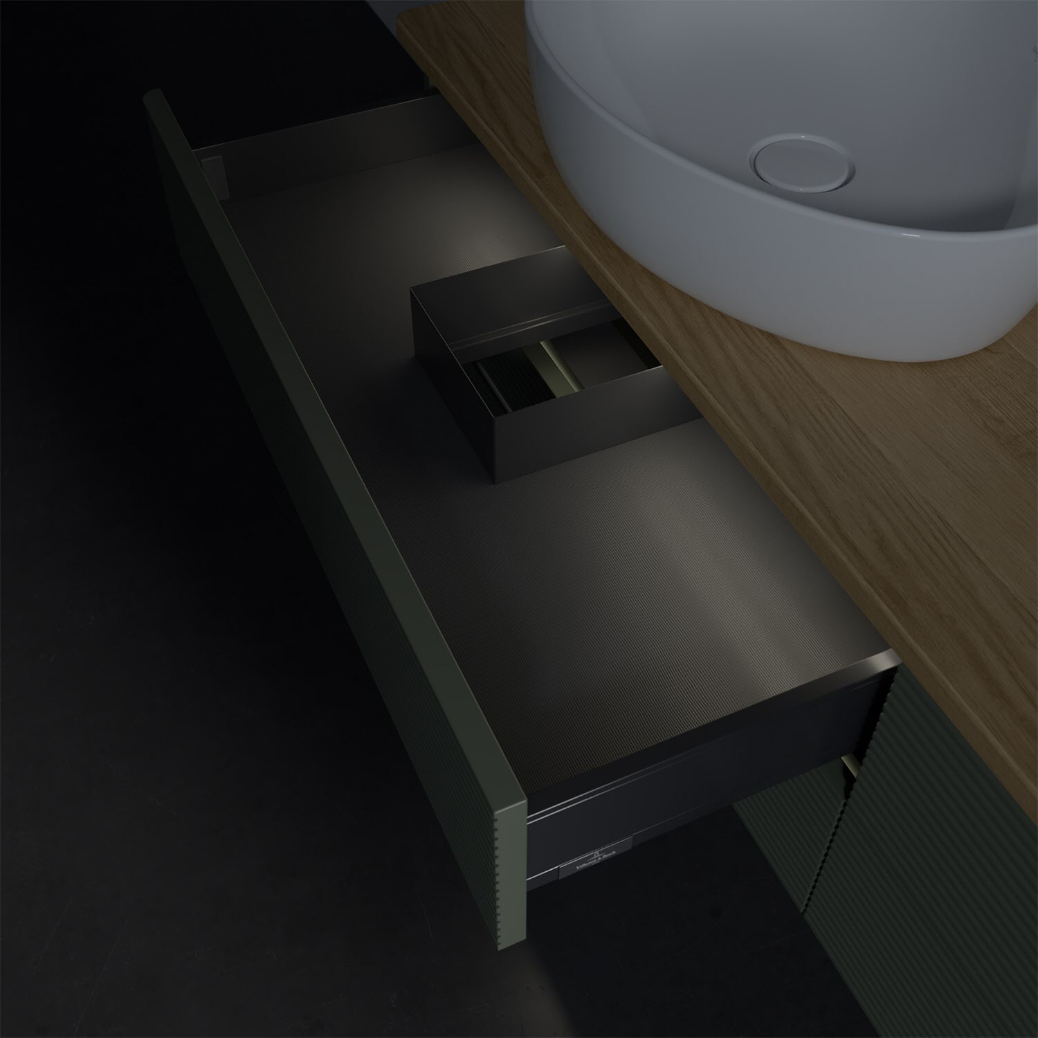 Villeroy & Boch Antao Waschbeckenunterschrank, 160 x 36 cm, 4 Auszüge mit LED-Licht, Front mit Struktur, mit Hahnloch, für Waschtisch links und rechts