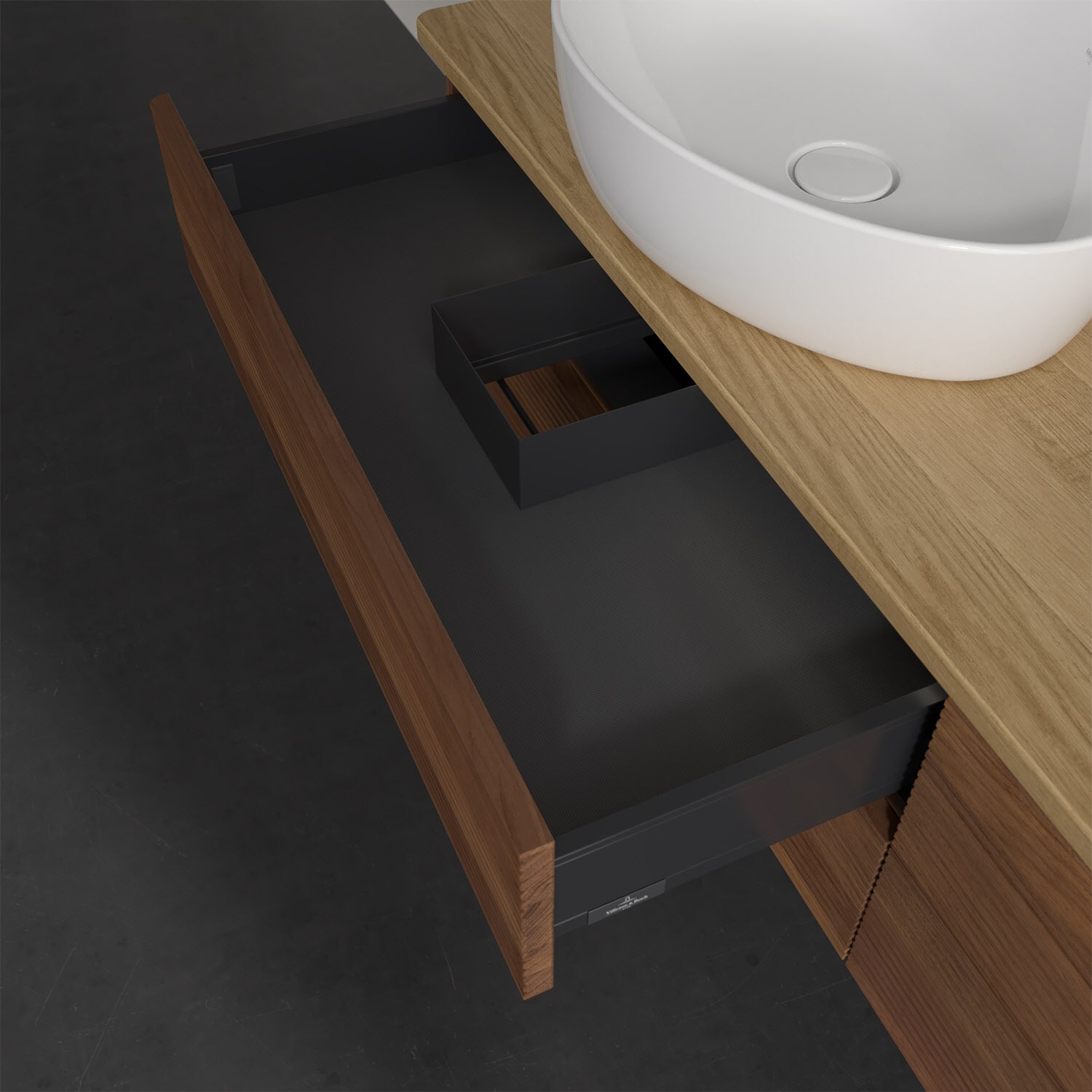 Villeroy & Boch Antao Waschbeckenunterschrank, 160 x 36 cm, 4 Auszüge mit LED-Licht, Front mit Struktur, mit Hahnloch, für Waschtisch links und rechts