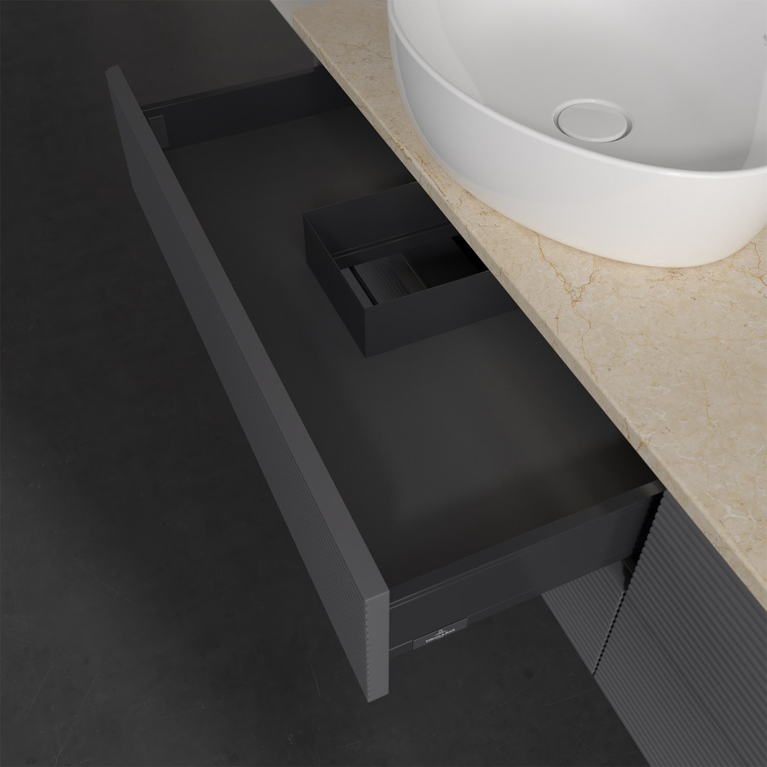 Villeroy & Boch Antao Waschbeckenunterschrank, 160 x 36 cm, 4 Auszüge mit LED-Licht, Front mit Struktur, mit Hahnloch, für Waschtisch links und rechts