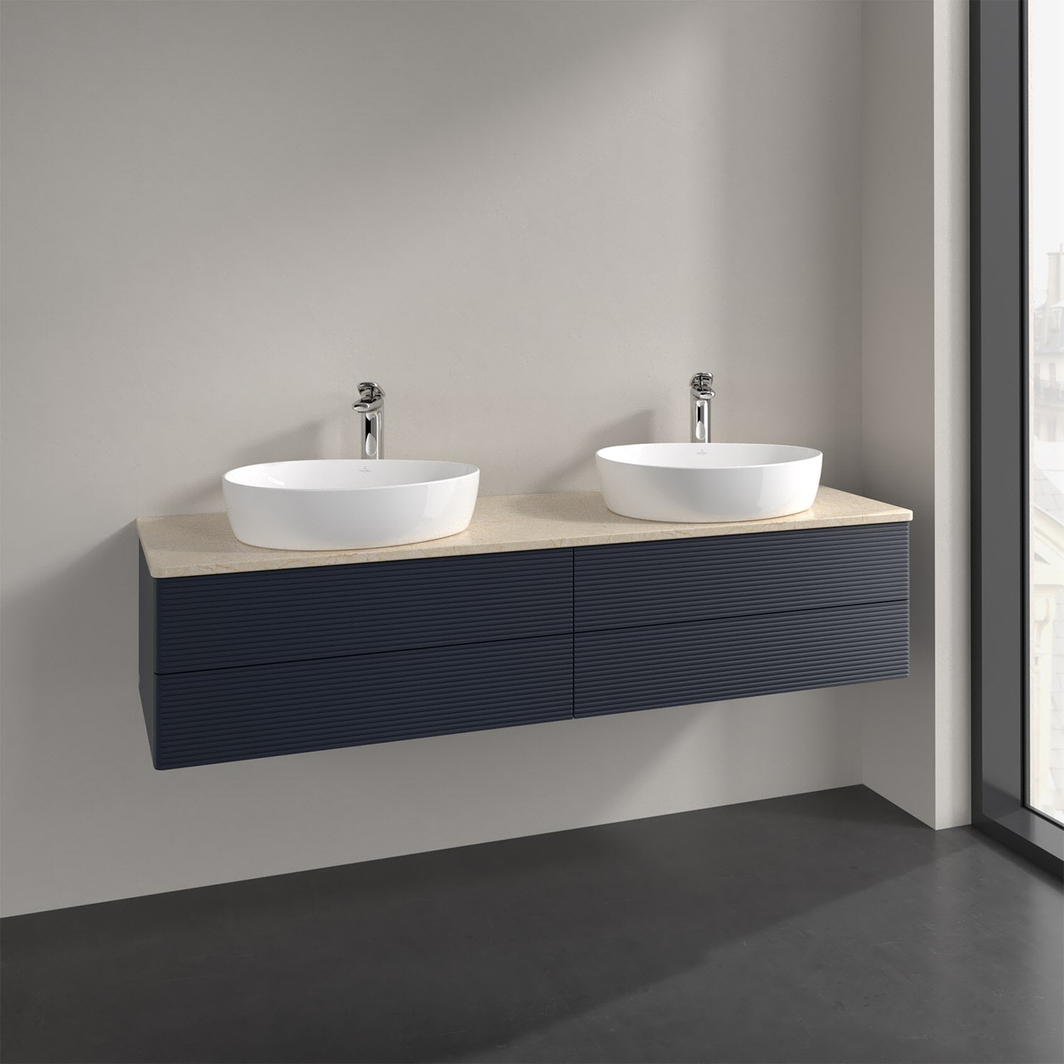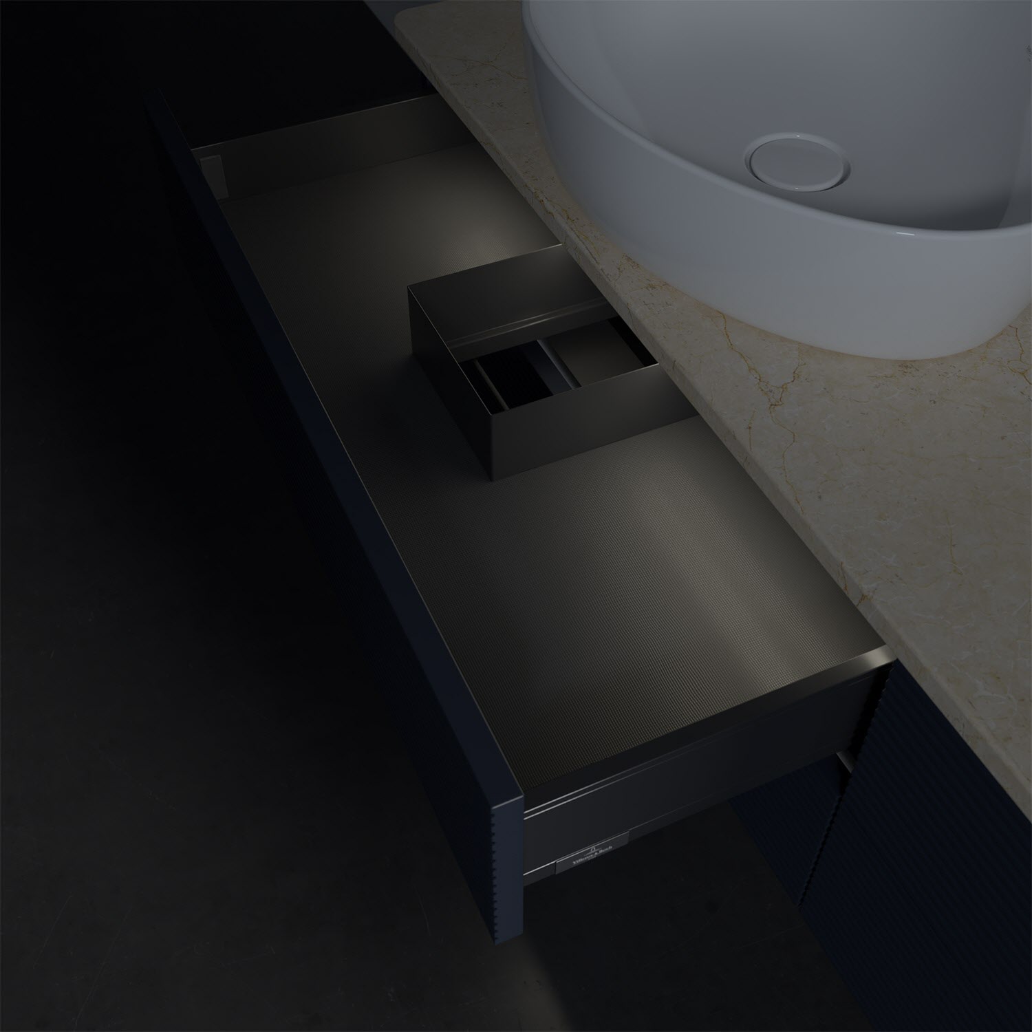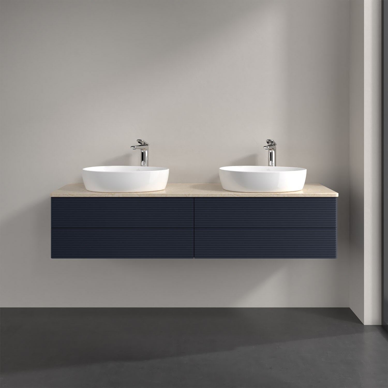 Villeroy & Boch Antao Waschbeckenunterschrank, 160 x 36 cm, 4 Auszüge mit LED-Licht, Front mit Struktur, mit Hahnloch, für Waschtisch links und rechts