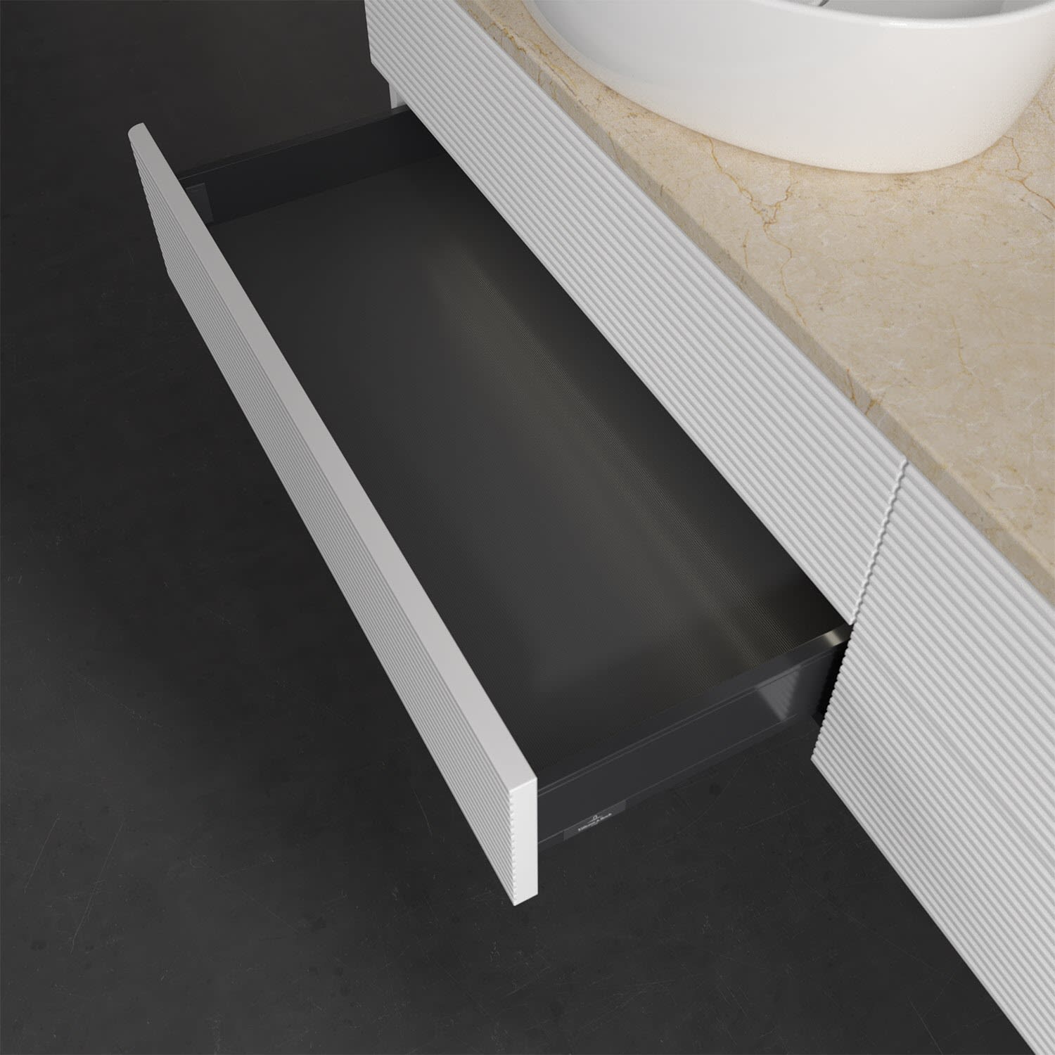 - kein Umfallen oder Verrutschen von Pflegeprodukten in den Schubladen dank rutschhemmendem Boden
