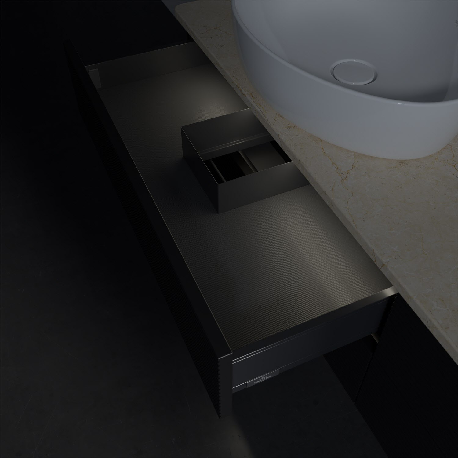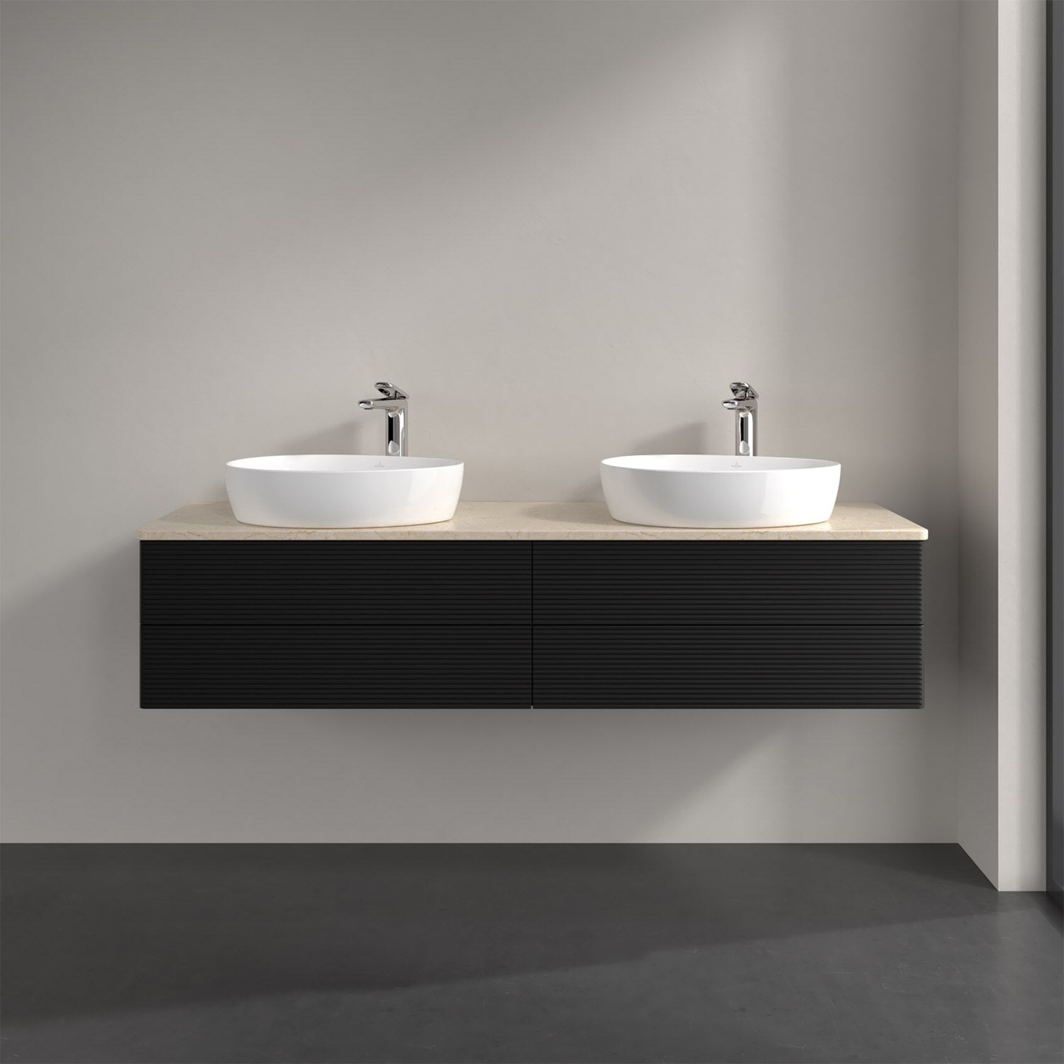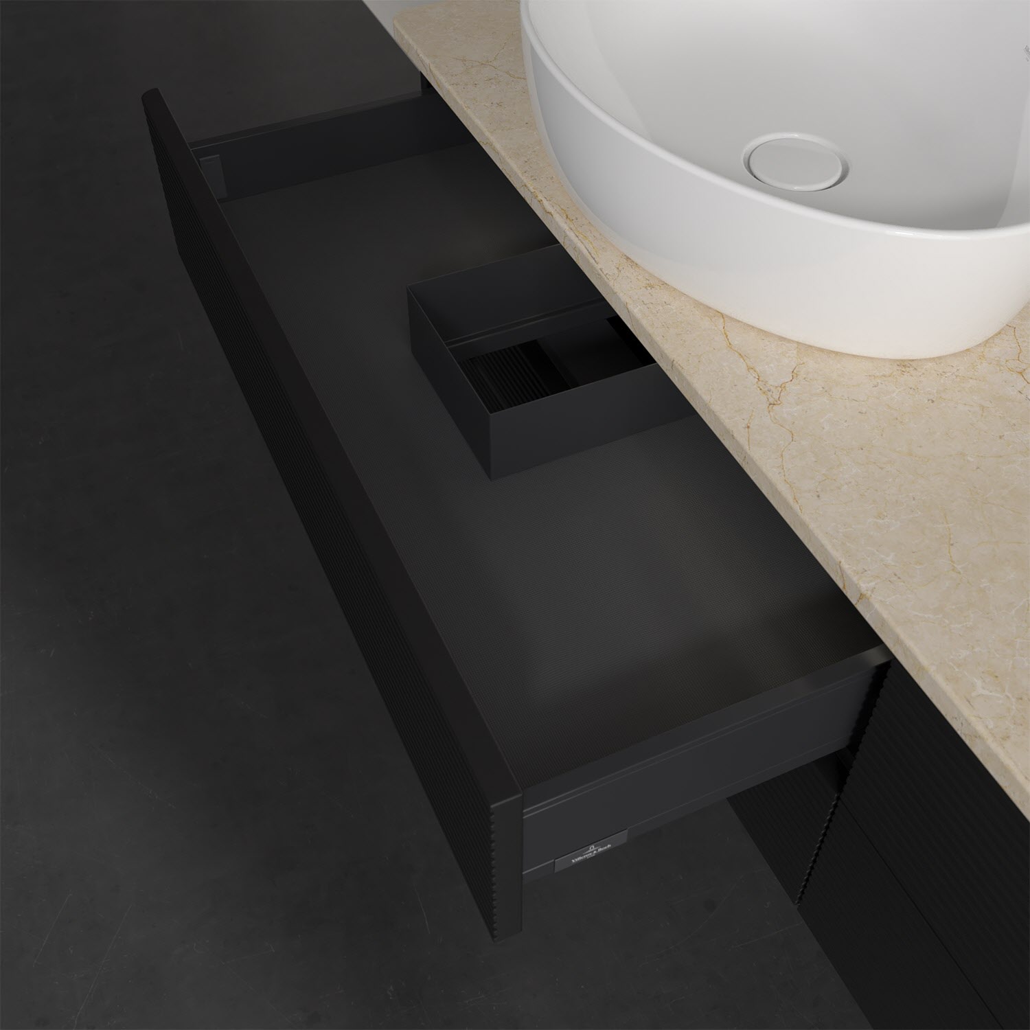 Villeroy & Boch Antao Waschbeckenunterschrank, 160 x 36 cm, 4 Auszüge mit LED-Licht, Front mit Struktur, mit Hahnloch, für Waschtisch links und rechts