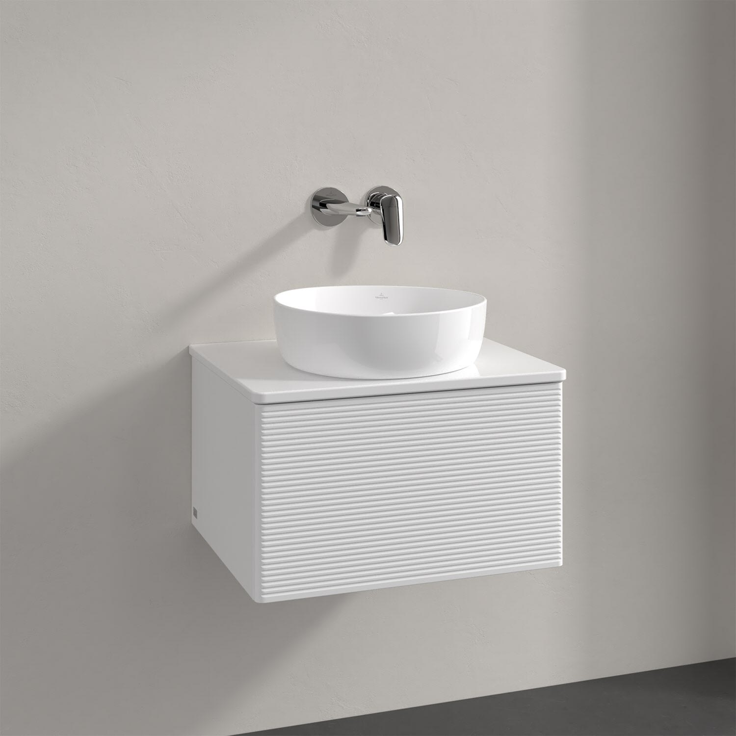 Villeroy & Boch Antao Waschbeckenunterschrank, 60 x 36 cm, 1 Auszug mit LED-Licht, Front mit Struktur, mit Hahnloch