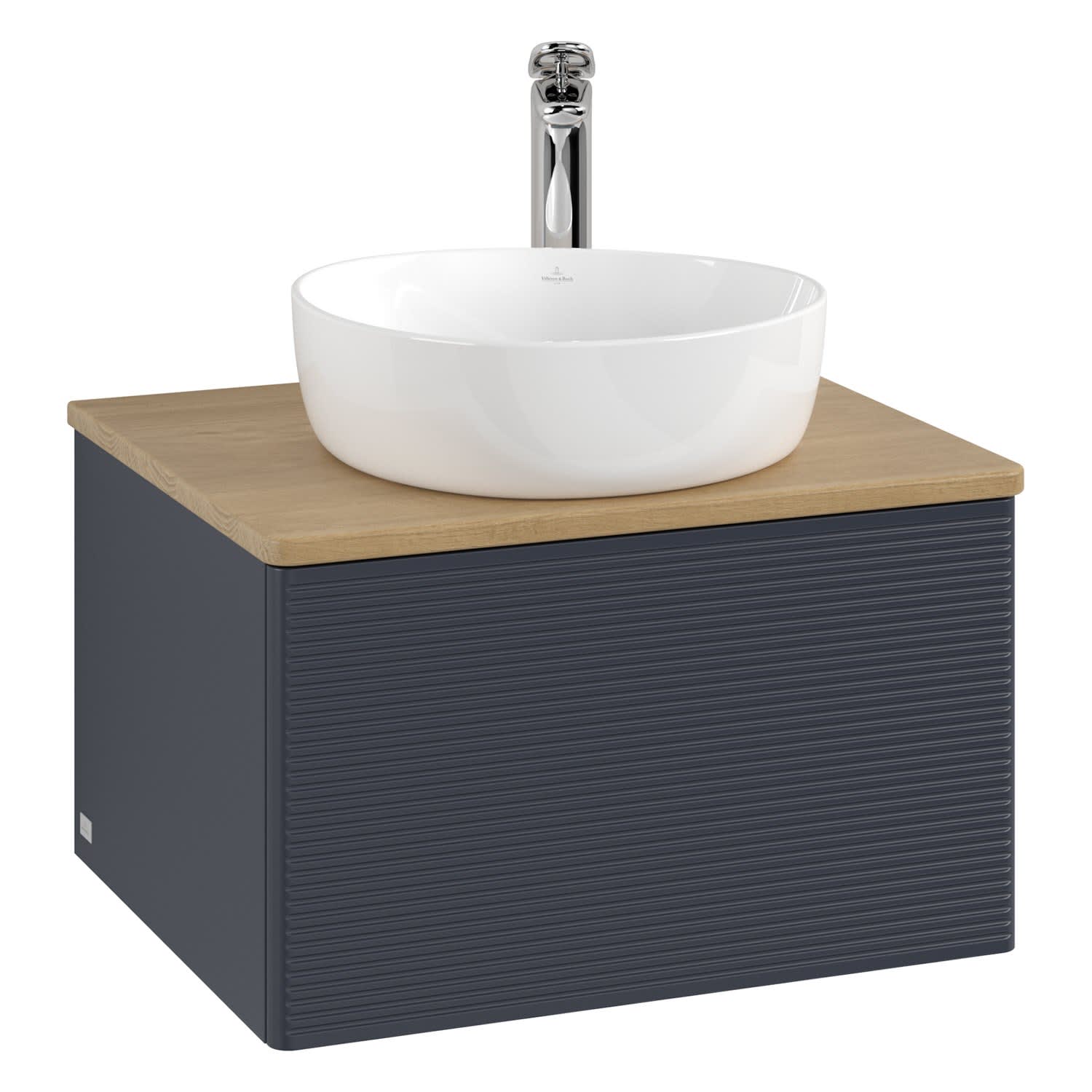Villeroy & Boch Antao Waschbeckenunterschrank, 60 x 36 cm, 1 Auszug mit LED-Licht, Front mit Struktur, mit Hahnloch