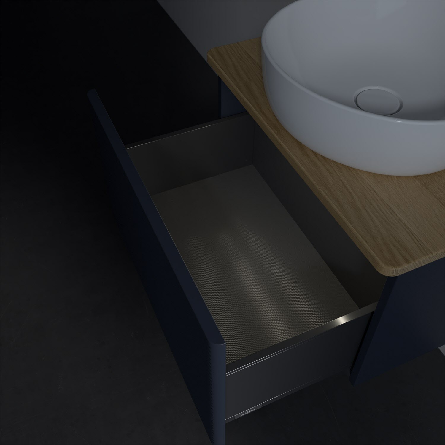 Wenig Platz im Badezimmer und dennoch soll es gemütlich und ordentlich sein? Dann ist der wandhängende Antao Waschtischunterschrank mit seinen sanft abgerundeten Kanten die ideale Lösung. Das geräumige Möbel bietet ausreichend Stauraum für alle nötigen Badutensilien. Zum Öffnen genügt dank der Push-to-Open Funktion ein leichter Druck auf den extra hohen Auszug mit strukturierter Front, der sich dann in seiner vollen Tiefe öffnet. Dabei wird gleichzeitig die angenehme Auszugsbeleuchtung in Warmweiß aktiviert. Das garantiert den benötigen Überblick! Praktisch ist auch der integrierte Antirutschboden und die SoftClosing Funktion, die ein Umfallen oder Verrutschen der verstauten Produkte verhindern. Villeroy & Boch hat alles durchdacht! Für eine besonders leichte Pflege sorgt die mehrschichtig deckend lackierte Oberfläche. Bei der Ausführung in Massivholz wird dank des verarbeiteten Massivholzes jedes Möbel zu einem Unikat, das sich durch das lebendige Naturmaterial durch seine einzigartige Struktur und Maserung auszeichnet.