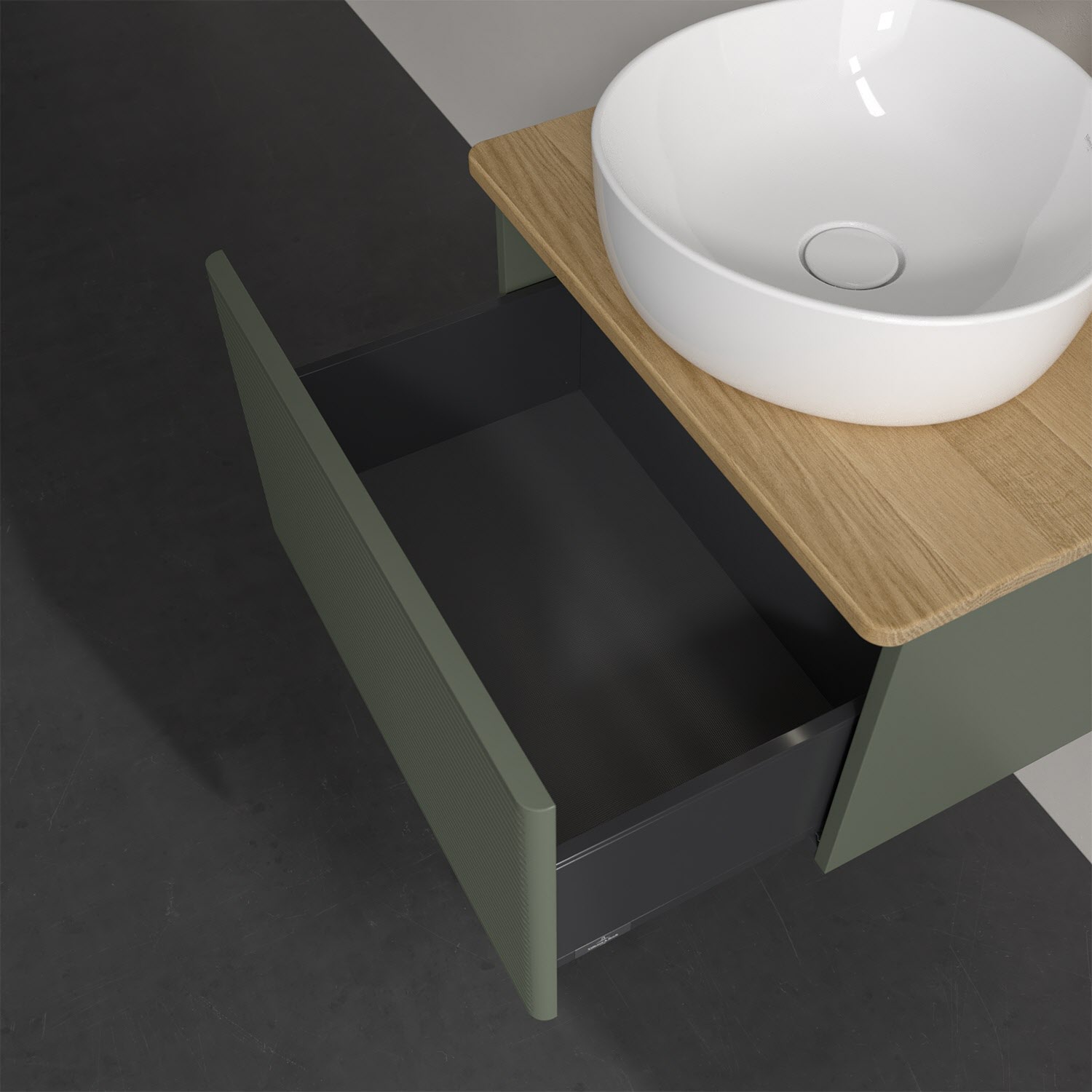 Villeroy & Boch Antao Waschbeckenunterschrank, 60 x 36 cm, 1 Auszug mit LED-Licht, Front mit Struktur, mit Hahnloch