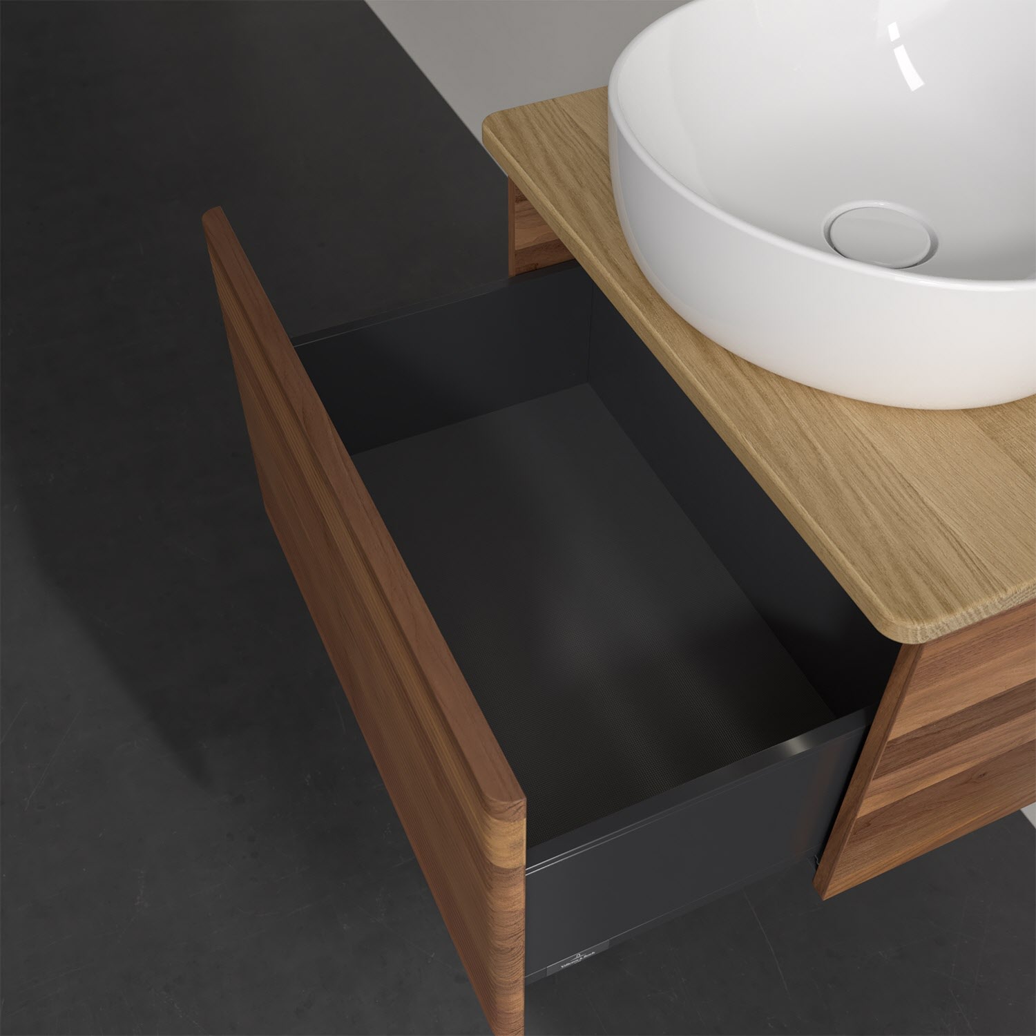 Wenig Platz im Badezimmer und dennoch soll es gemütlich und ordentlich sein? Dann ist der wandhängende Antao Waschtischunterschrank mit seinen sanft abgerundeten Kanten die ideale Lösung. Das geräumige Möbel bietet ausreichend Stauraum für alle nötigen Badutensilien. Zum Öffnen genügt dank der Push-to-Open Funktion ein leichter Druck auf den extra hohen Auszug mit strukturierter Front, der sich dann in seiner vollen Tiefe öffnet. Dabei wird gleichzeitig die angenehme Auszugsbeleuchtung in Warmweiß aktiviert. Das garantiert den benötigen Überblick! Praktisch ist auch der integrierte Antirutschboden und die SoftClosing Funktion, die ein Umfallen oder Verrutschen der verstauten Produkte verhindern. Villeroy & Boch hat alles durchdacht! Für eine besonders leichte Pflege sorgt die mehrschichtig deckend lackierte Oberfläche. Bei der Ausführung in Massivholz wird dank des verarbeiteten Massivholzes jedes Möbel zu einem Unikat, das sich durch das lebendige Naturmaterial durch seine einzigartige Struktur und Maserung auszeichnet.