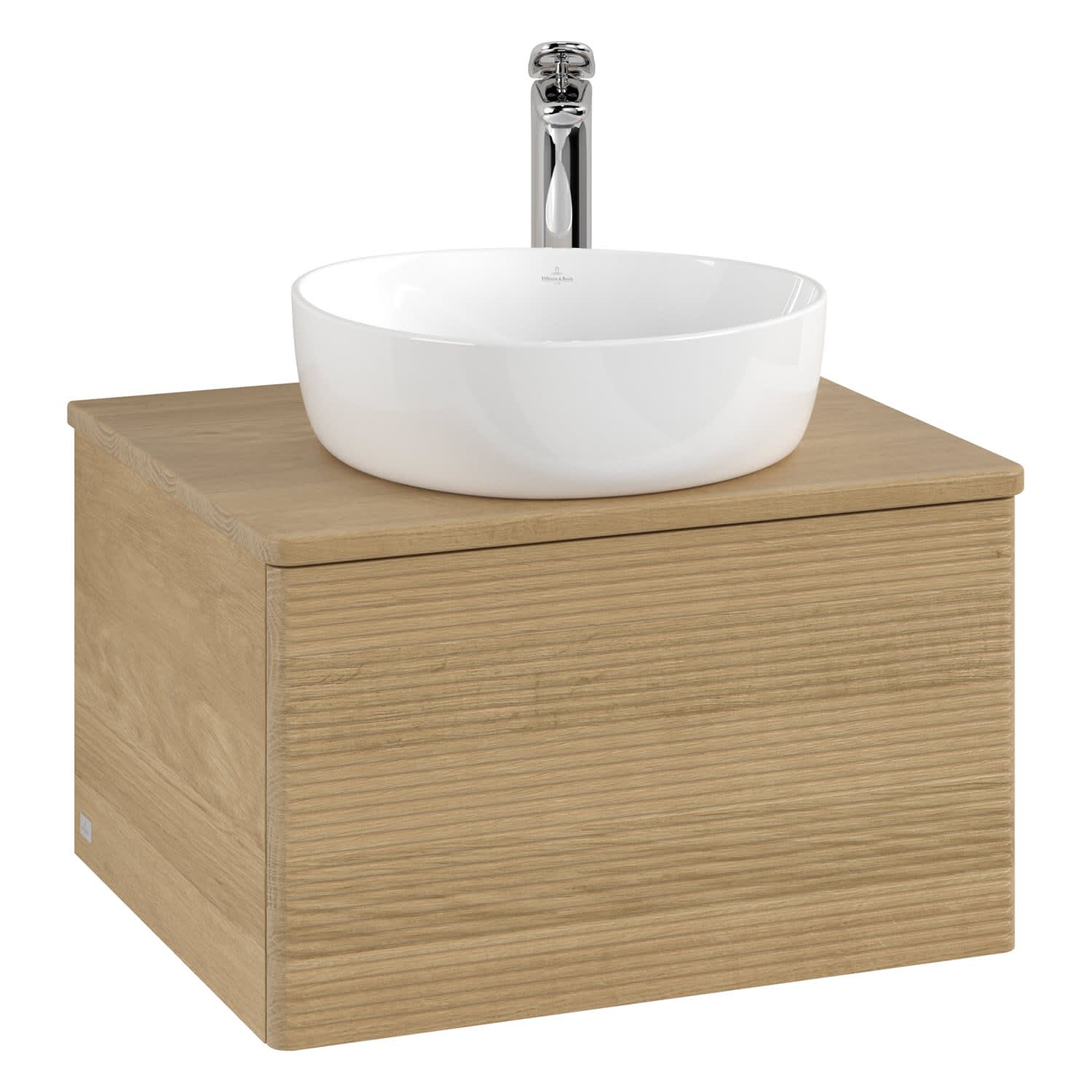 Villeroy & Boch Antao Waschbeckenunterschrank, 60 x 36 cm, 1 Auszug mit LED-Licht, Front mit Struktur, mit Hahnloch