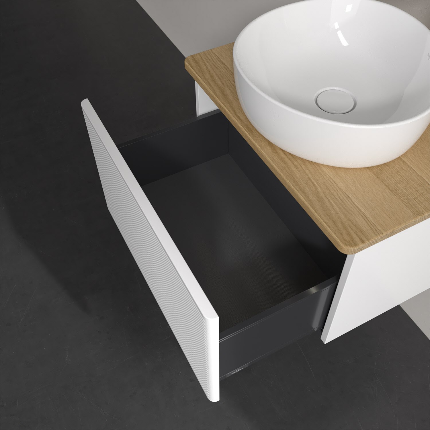 Villeroy & Boch Antao Waschbeckenunterschrank, 60 x 36 cm, 1 Auszug mit LED-Licht, Front mit Struktur, mit Hahnloch