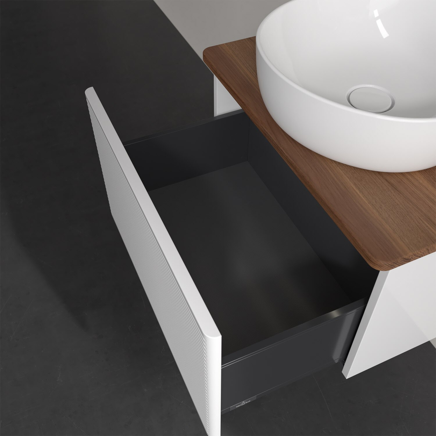 Wenig Platz im Badezimmer und dennoch soll es gemütlich und ordentlich sein? Dann ist der wandhängende Antao Waschtischunterschrank mit seinen sanft abgerundeten Kanten die ideale Lösung. Das geräumige Möbel bietet ausreichend Stauraum für alle nötigen Badutensilien. Zum Öffnen genügt dank der Push-to-Open Funktion ein leichter Druck auf den extra hohen Auszug mit strukturierter Front, der sich dann in seiner vollen Tiefe öffnet. Dabei wird gleichzeitig die angenehme Auszugsbeleuchtung in Warmweiß aktiviert. Das garantiert den benötigen Überblick! Praktisch ist auch der integrierte Antirutschboden und die SoftClosing Funktion, die ein Umfallen oder Verrutschen der verstauten Produkte verhindern. Villeroy & Boch hat alles durchdacht! Für eine besonders leichte Pflege sorgt die mehrschichtig deckend lackierte Oberfläche. Bei der Ausführung in Massivholz wird dank des verarbeiteten Massivholzes jedes Möbel zu einem Unikat, das sich durch das lebendige Naturmaterial durch seine einzigartige Struktur und Maserung auszeichnet.