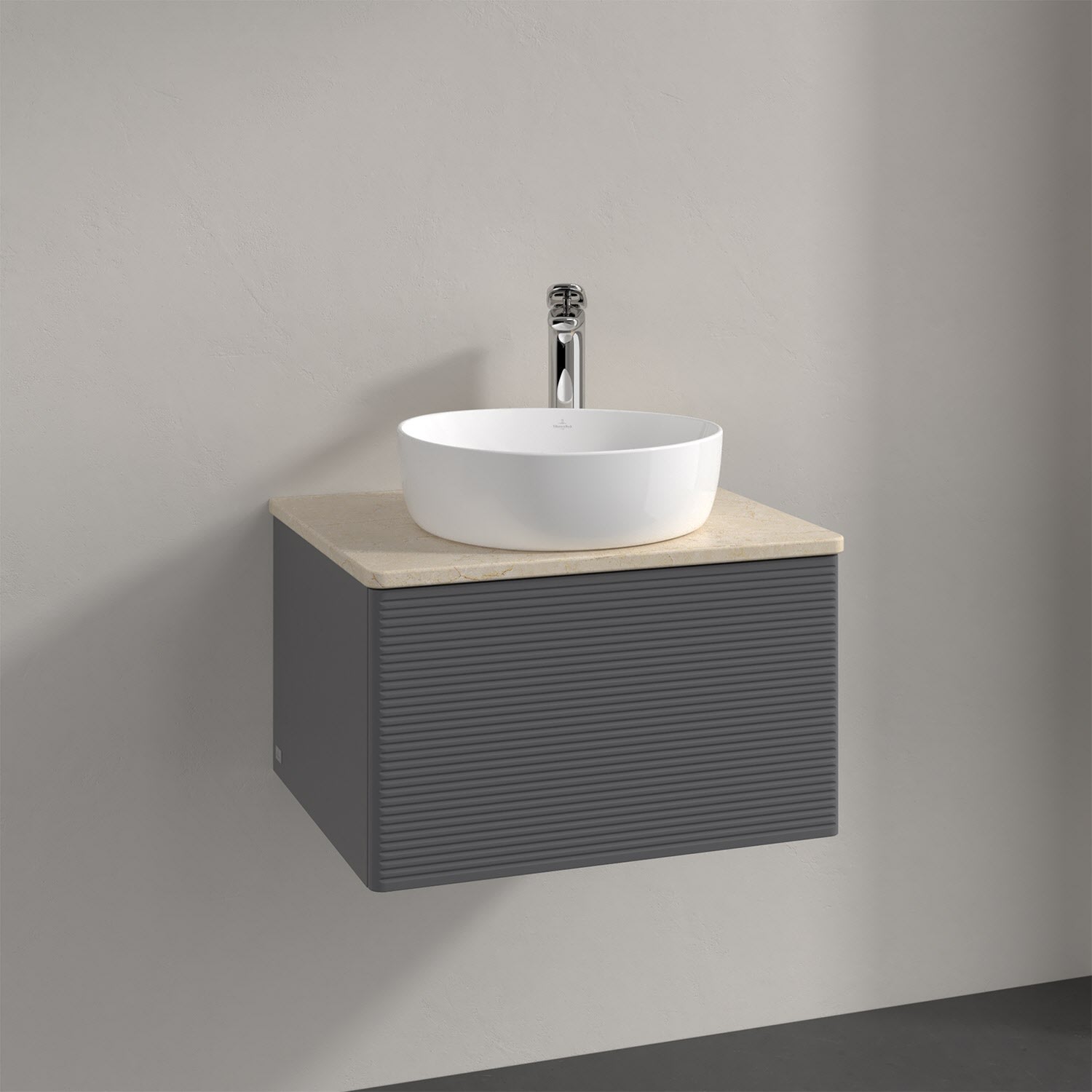 Villeroy & Boch Antao Waschbeckenunterschrank, 60 x 36 cm, 1 Auszug mit LED-Licht, Front mit Struktur, mit Hahnloch