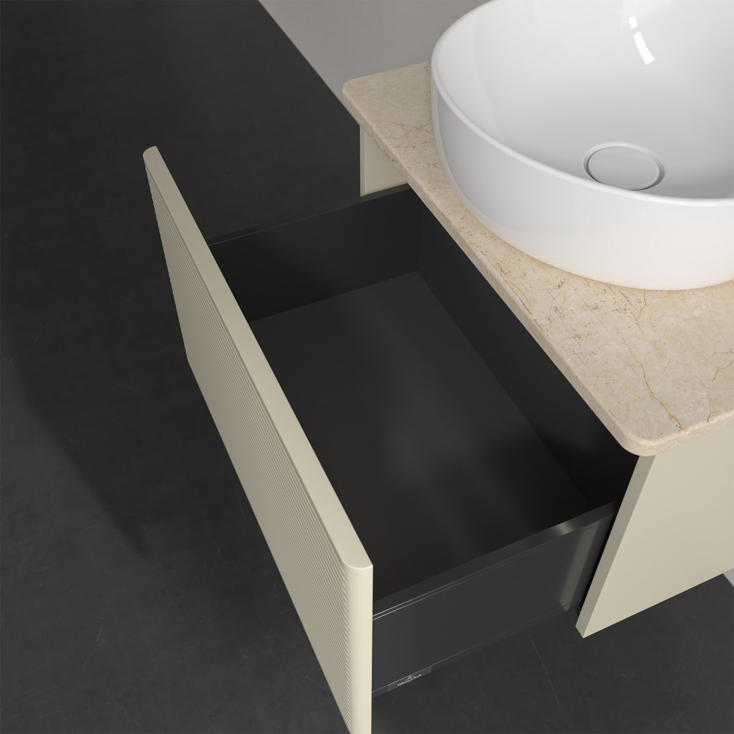 Villeroy & Boch Antao Waschbeckenunterschrank, 60 x 36 cm, 1 Auszug mit LED-Licht, Front mit Struktur, mit Hahnloch