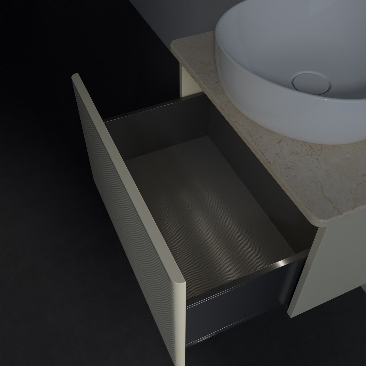 - kein Umfallen oder Verrutschen von Pflegeprodukten in den Schubladen dank rutschhemmendem Boden