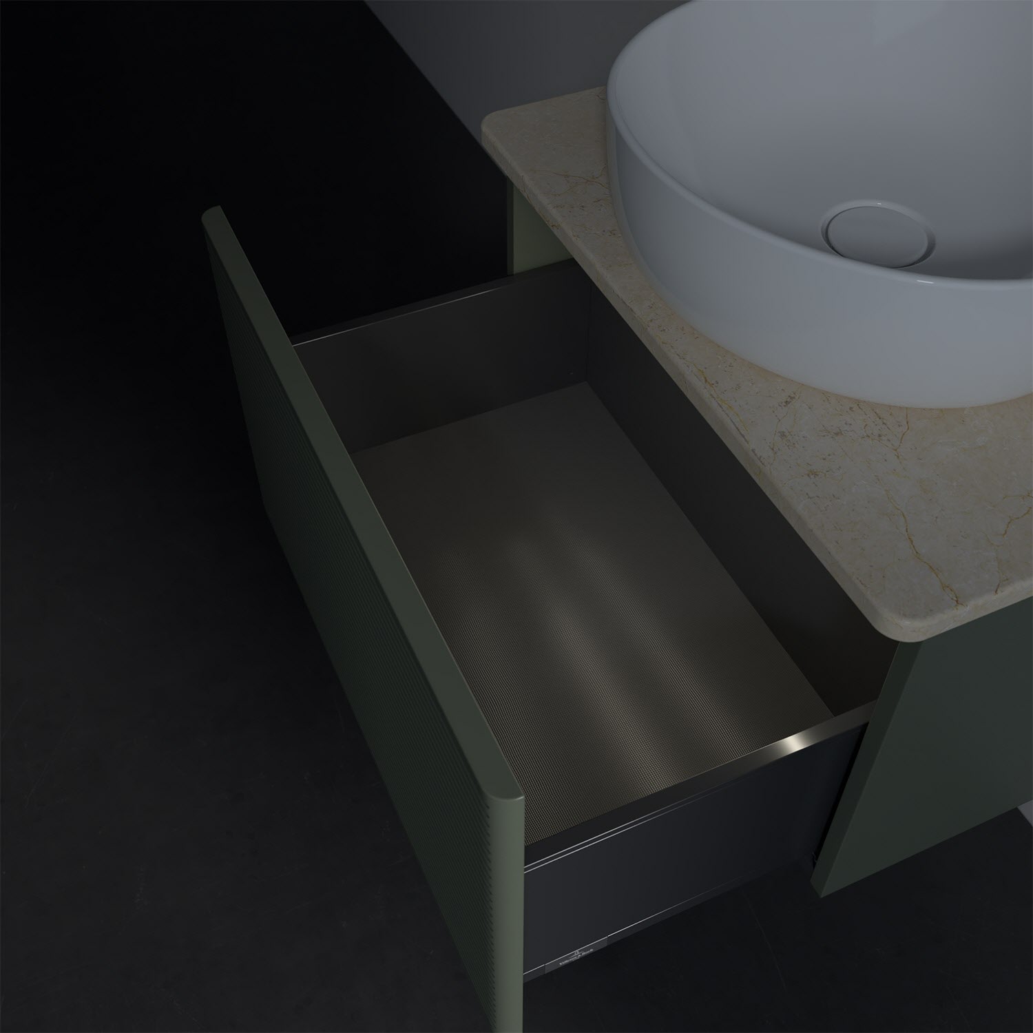 - kein Umfallen oder Verrutschen von Pflegeprodukten in den Schubladen dank rutschhemmendem Boden