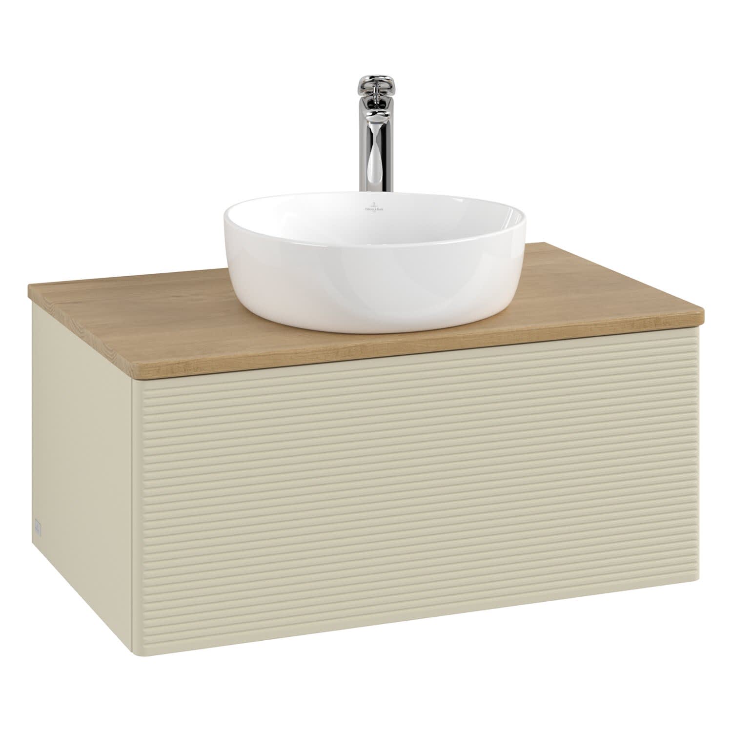 Villeroy & Boch Antao Waschbeckenunterschrank, 80 x 36 cm, 1 Auszug mit LED-Licht, Front mit Struktur, mit Hahnloch