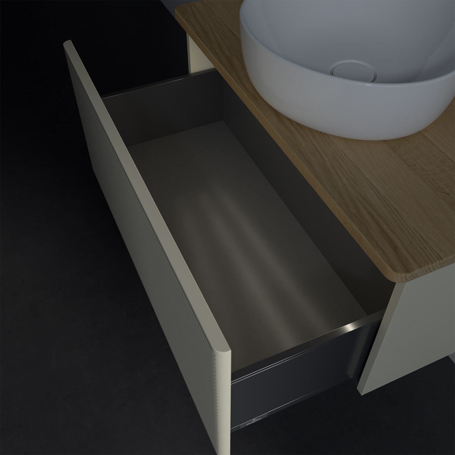 - kein Umfallen oder Verrutschen von Pflegeprodukten in den Schubladen dank rutschhemmendem Boden