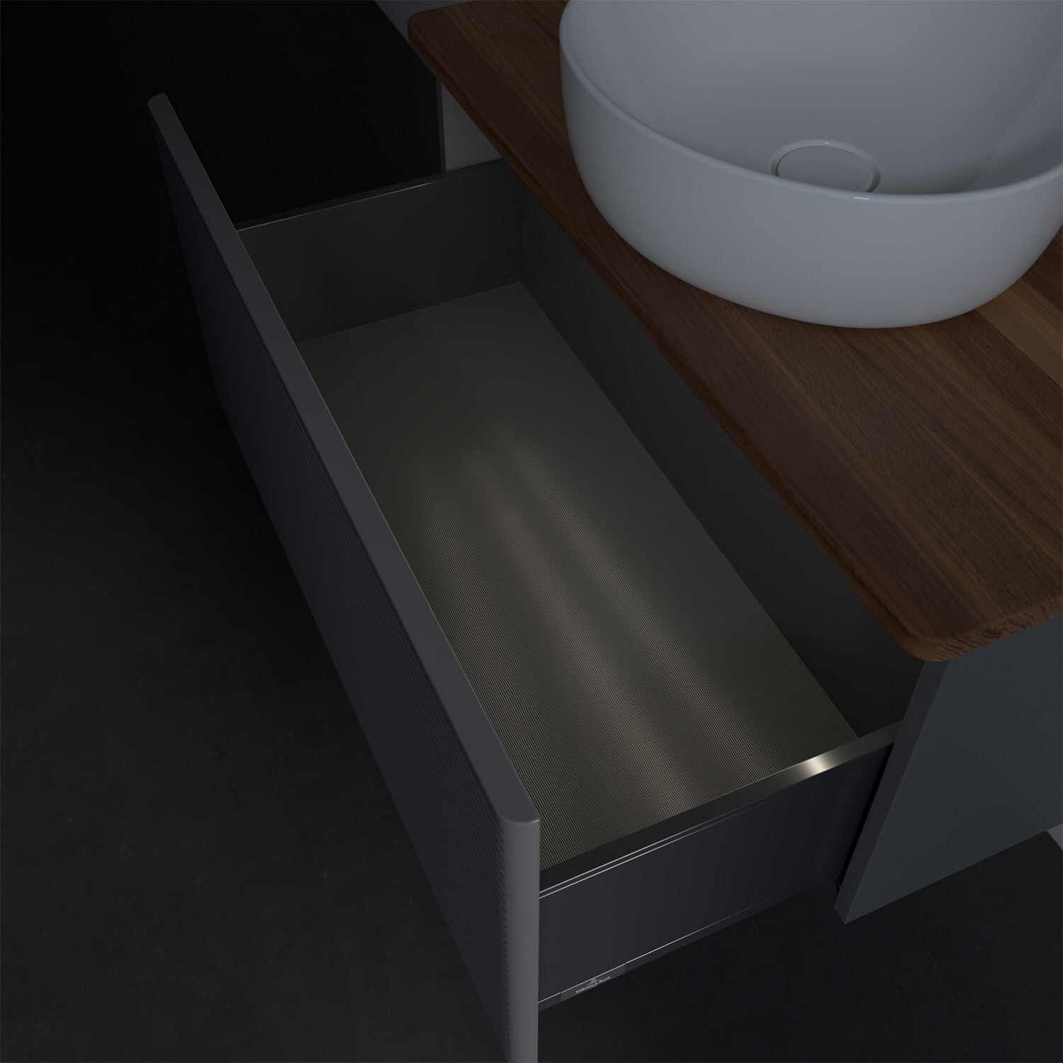 Mit dem wandhängenden Waschtischunterschrank der Kollektion Antao wird ein natürliches und gemütliches Flair am Waschplatz geschaffen. Dafür sorgen die sanfte Formsprache mit abgerundeten Kanten und die strukturierte Front des hochwertigen Badmöbels. Die wichtigsten Badutensilien für die tägliche Routine können seitlich des Waschtischs auf die Waschtischplatte gestellt werden. Ansonsten bietet ein extra hoher Auszug inklusive warmweißer Beleuchtung und Antirutschboden ausreichend Platz für weitere Produkte, die garantiert bleiben, wo sie hingehören. Der Unterschrank verfügt zudem über einen Vollauszug und Selbsteinzug mit SoftClosing Funktion, damit er bequem und mühelos geöffnet und geschlossen werden kann. Gewohnte Qualität von Villeroy & Boch! Für eine besonders leichte Pflege sorgt die mehrschichtig deckend lackierte Oberfläche. Bei der Ausführung in Massivholz wird dank des verarbeiteten Massivholzes jedes Möbel zu einem Unikat, das sich durch das lebendige Naturmaterial durch seine einzigartige Struktur und Maserung auszeichnet.