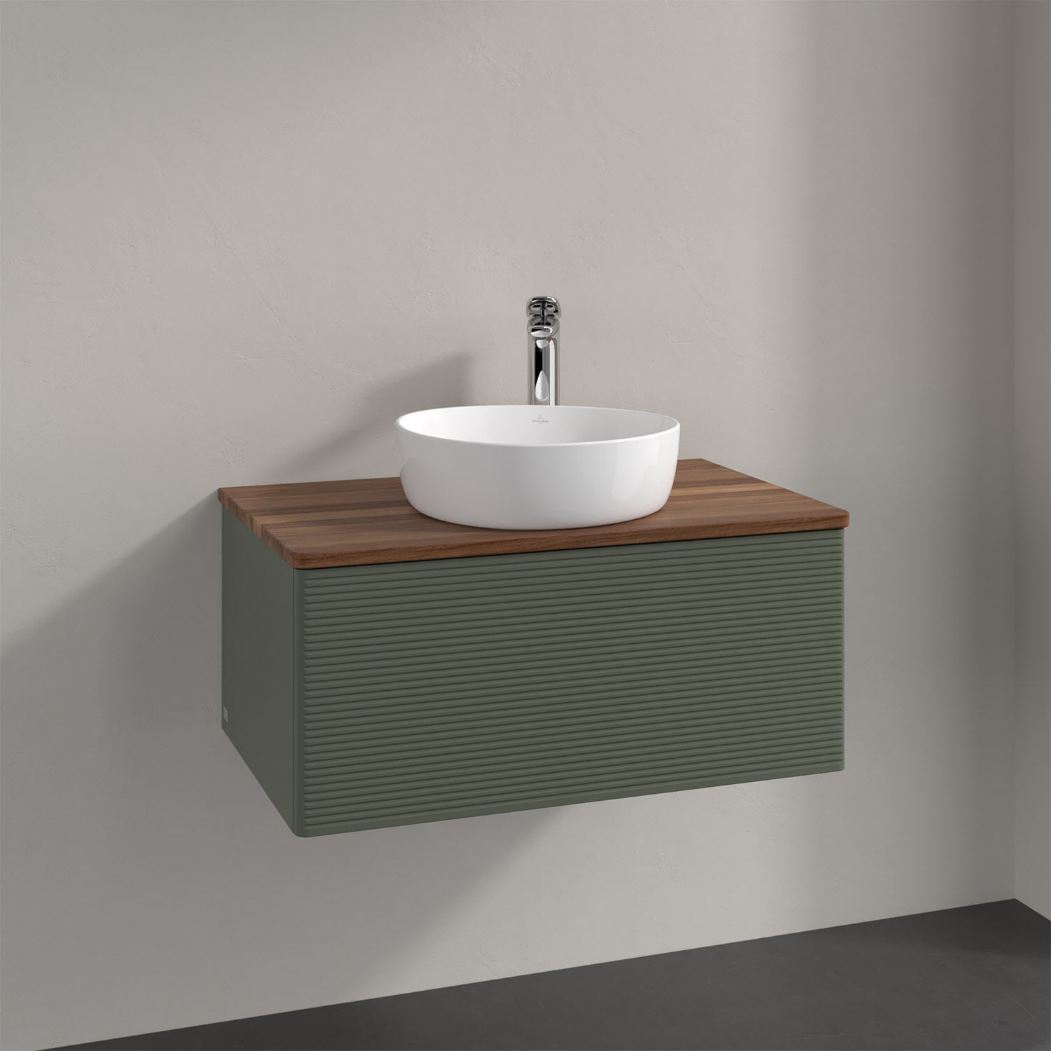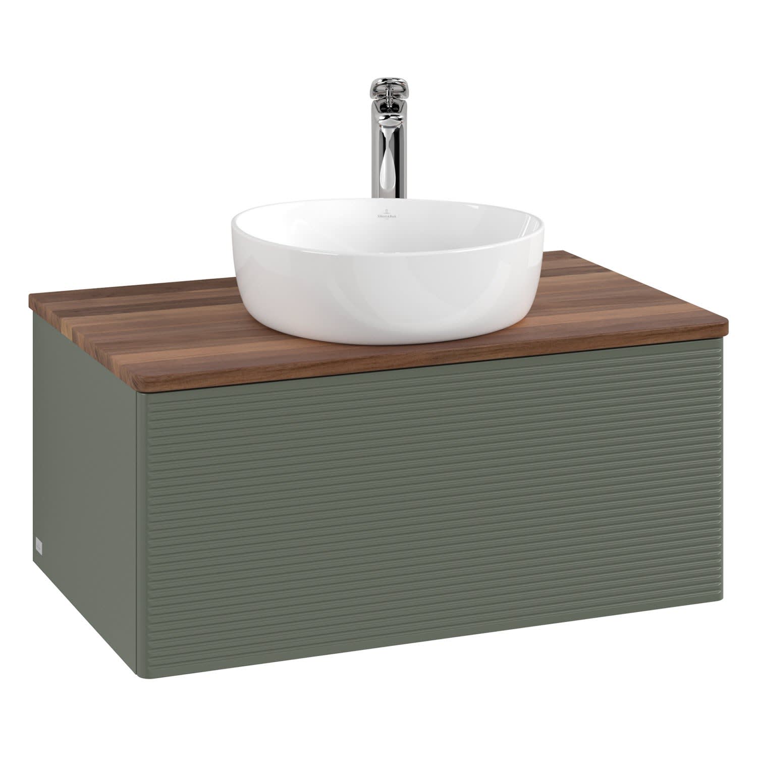 Villeroy & Boch Antao Waschbeckenunterschrank, 80 x 36 cm, 1 Auszug mit LED-Licht, Front mit Struktur, mit Hahnloch