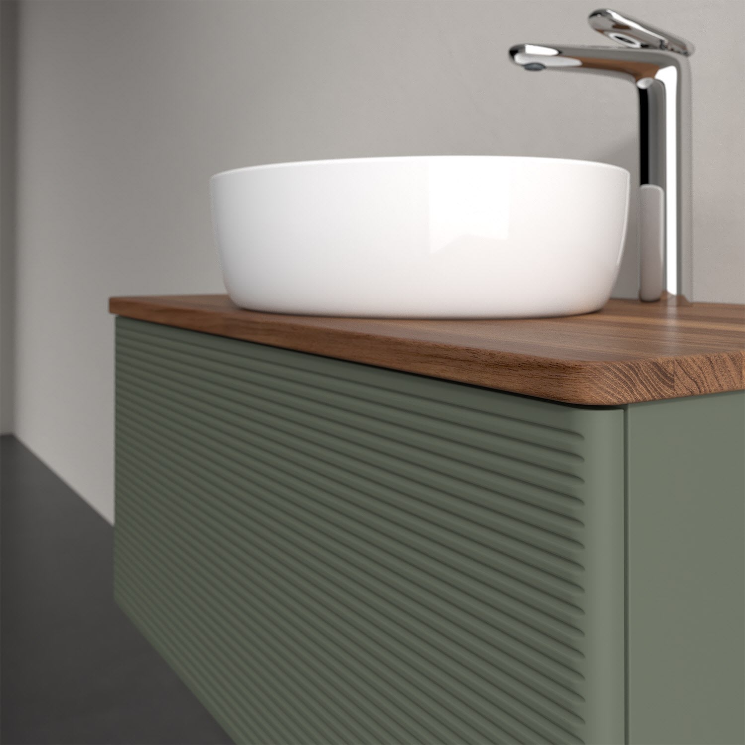 Mit dem wandhängenden Waschtischunterschrank der Kollektion Antao wird ein natürliches und gemütliches Flair am Waschplatz geschaffen. Dafür sorgen die sanfte Formsprache mit abgerundeten Kanten und die strukturierte Front des hochwertigen Badmöbels. Die wichtigsten Badutensilien für die tägliche Routine können seitlich des Waschtischs auf die Waschtischplatte gestellt werden. Ansonsten bietet ein extra hoher Auszug inklusive warmweißer Beleuchtung und Antirutschboden ausreichend Platz für weitere Produkte, die garantiert bleiben, wo sie hingehören. Der Unterschrank verfügt zudem über einen Vollauszug und Selbsteinzug mit SoftClosing Funktion, damit er bequem und mühelos geöffnet und geschlossen werden kann. Gewohnte Qualität von Villeroy & Boch! Für eine besonders leichte Pflege sorgt die mehrschichtig deckend lackierte Oberfläche. Bei der Ausführung in Massivholz wird dank des verarbeiteten Massivholzes jedes Möbel zu einem Unikat, das sich durch das lebendige Naturmaterial durch seine einzigartige Struktur und Maserung auszeichnet.
