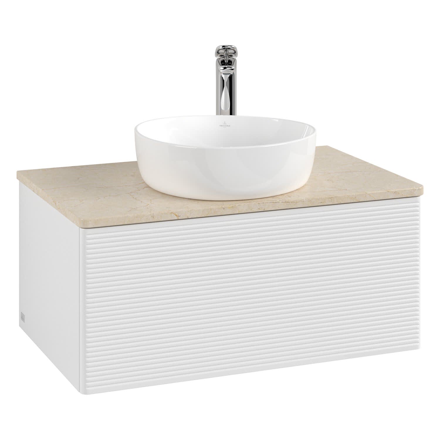 Villeroy & Boch Antao Waschbeckenunterschrank, 80 x 36 cm, 1 Auszug mit LED-Licht, Front mit Struktur, mit Hahnloch